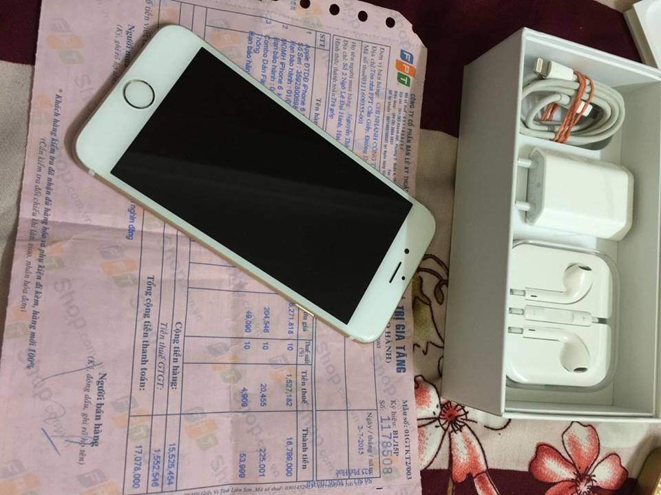 cần bán 1 con 6 gold 16gb qte full box fpt máy móc còn nguyên zin bị mẻ kính trên như trong ảnh còn lại đẹp còn bảo hành fpt t7-2016 giá 10tr3 mua bán tại nhà ib or lh 01694211996-01254087777