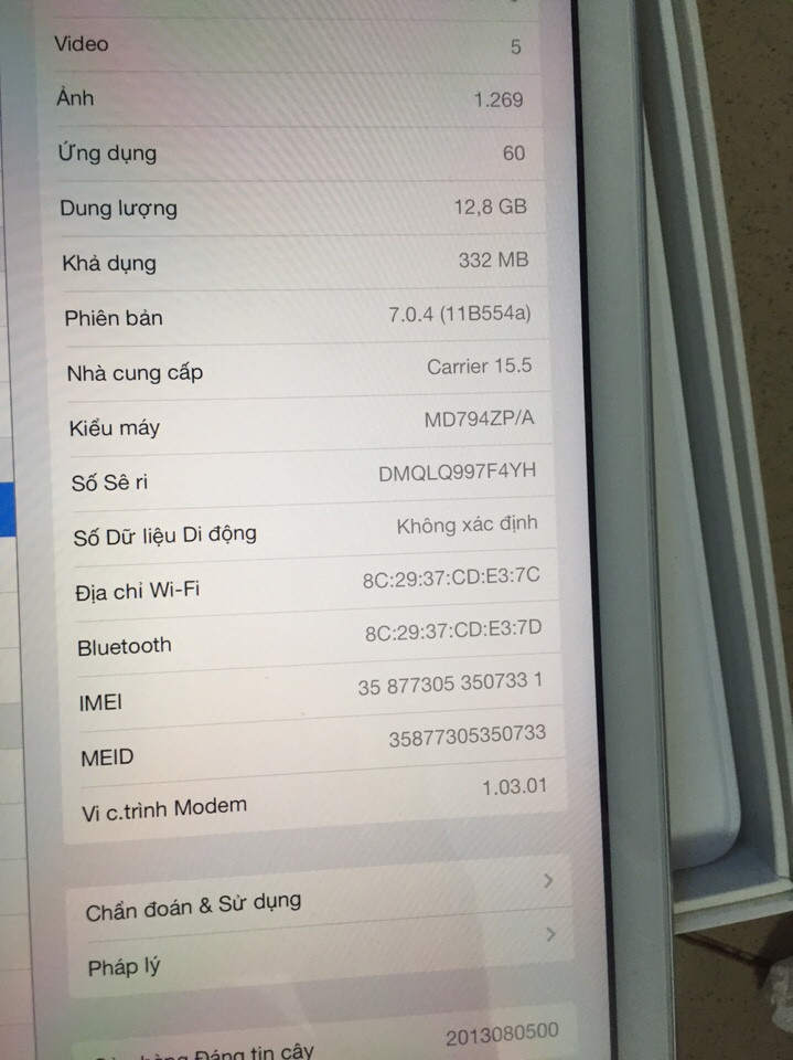 Máy nhà xài, giờ dư dùng nên bán bớt. IPAD AIR 1 16gb 4g FULL BOX hộp imeil nguyên zin chưa sửa chữa. xài ko lỗi lầm j hết.