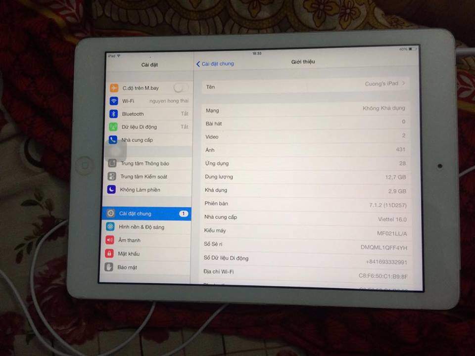Như tiêu đề em có 1 e ipad air 16gb màu trắng, ngoài bị vỡ góc màn hình chứ mọi thứ đều ổn cả, bác nào có thiện chí mua alo e sdt XXX , quất sớm e có fix chút gọi là lộc lá, tiện có 1 em ip 5s gold hình thức mặt trước mặt sau ổn, nhưng viền bị móp do cho thằng cu nhà chơi điện tử , giá e nó là 3t8 ! :)))