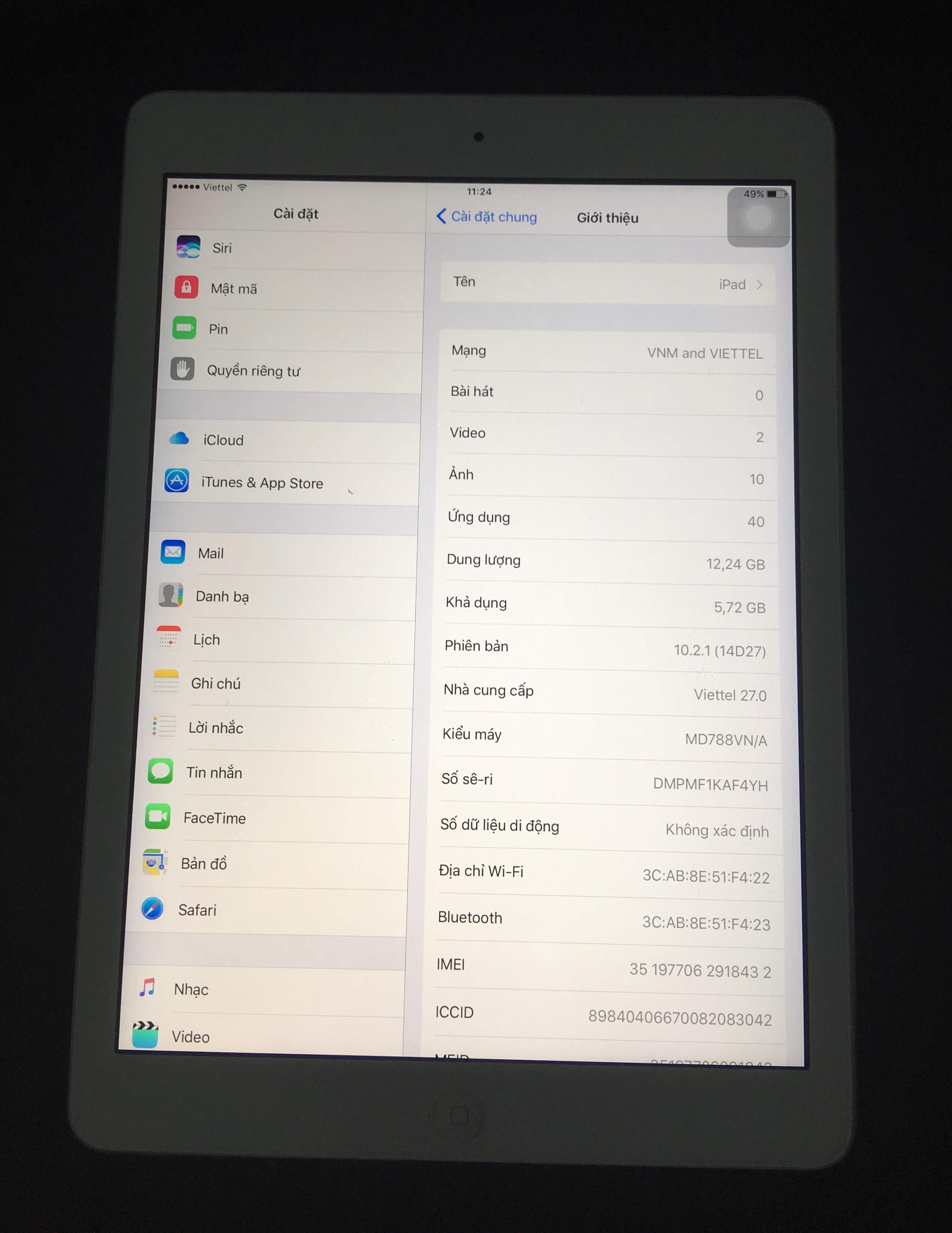 Ipad air màu trắng retina 16gb , 4g , zin 100%, xạc cable, bh 1 tháng .