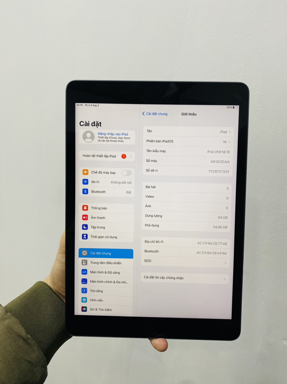 - Ipad Gen 9 Wifi 64Gb màu gray nguyên zin nguyên bản chính hãng ZA