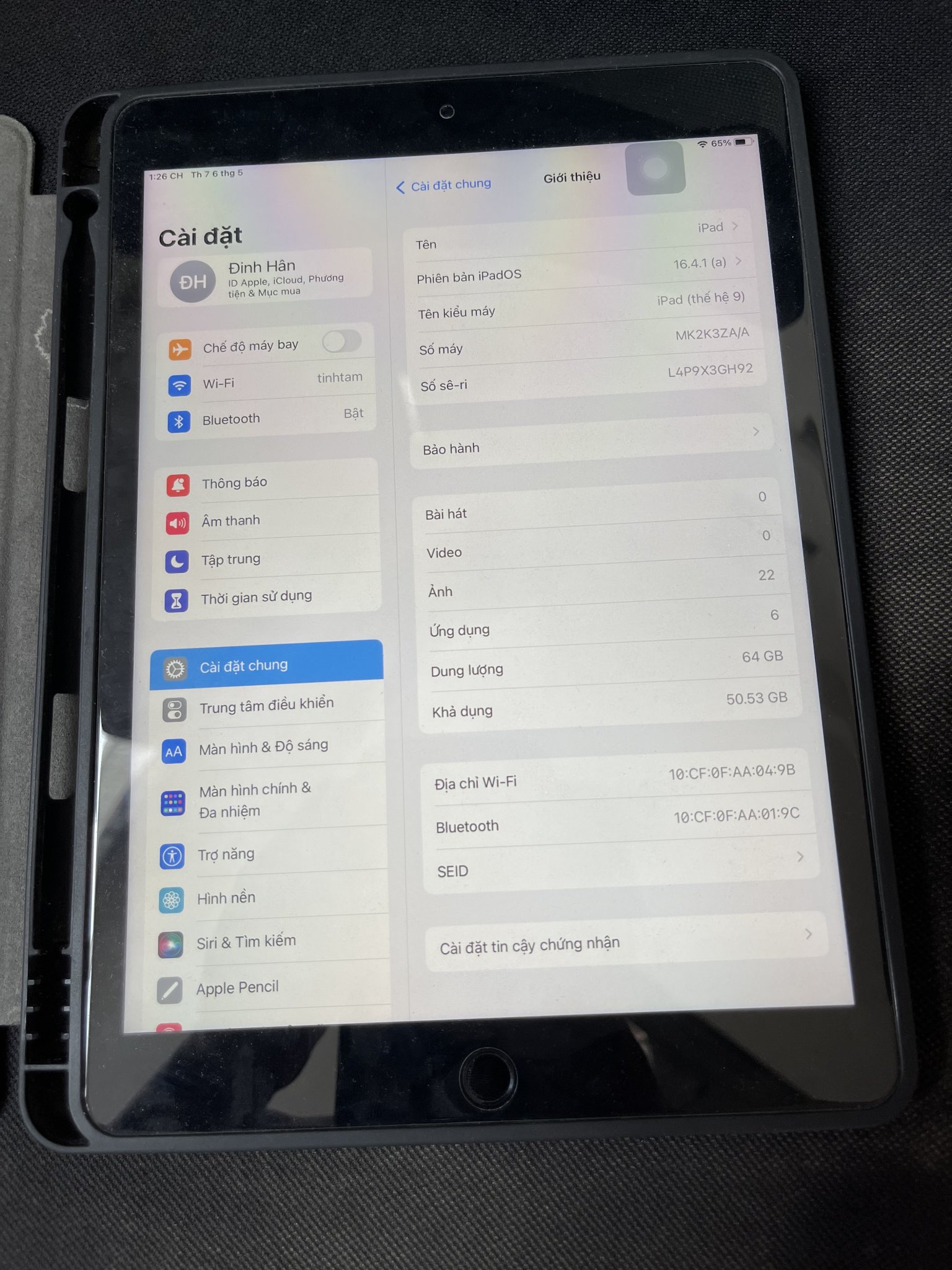 Ipad gen 9 like new, 64G, còn bh 10/03/2024
