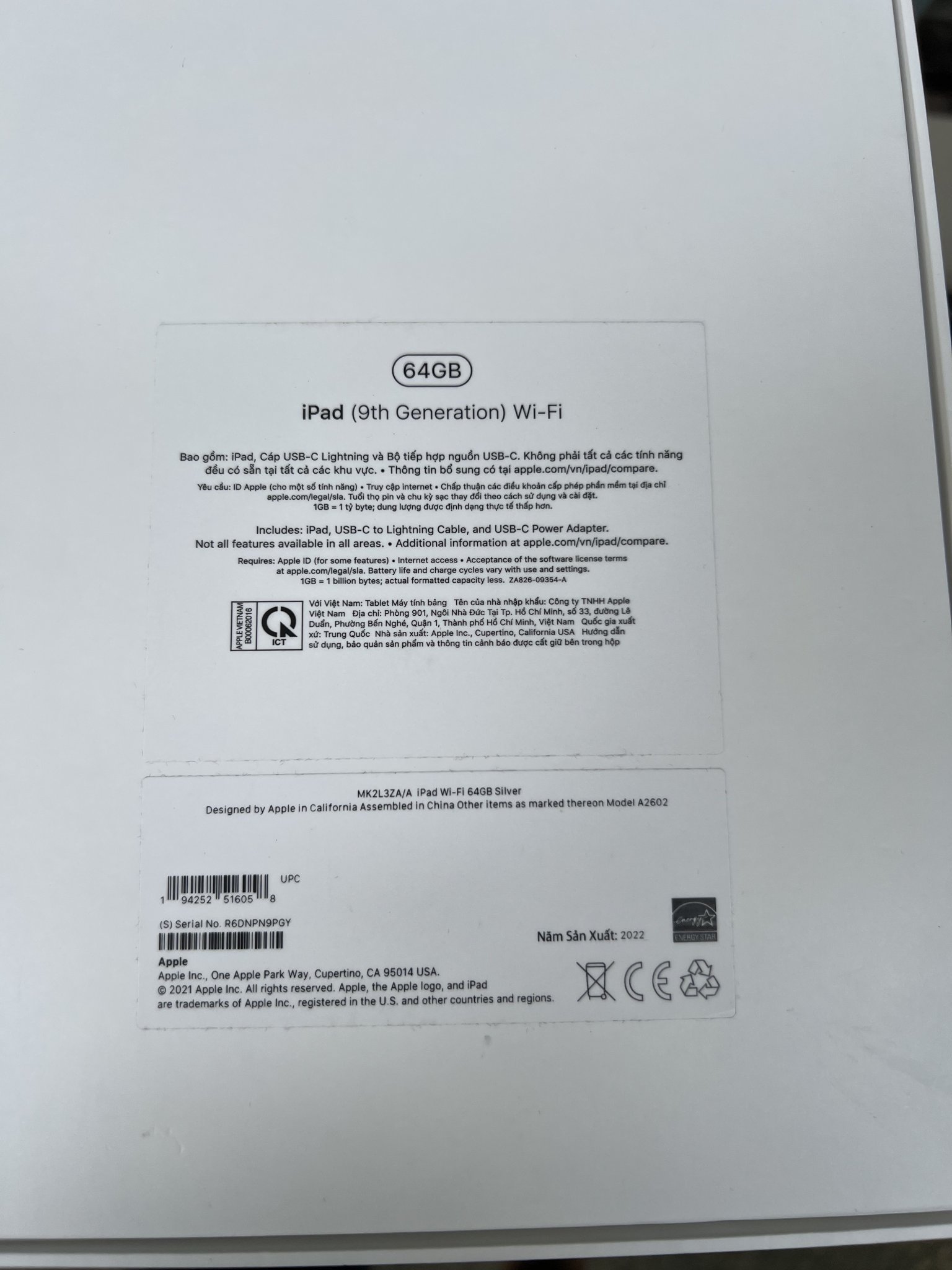 iPad gen 9 64G silver bản Wifi likenew như mới active 26/4 fullbox chính hãng phân phối tại Việt Nam