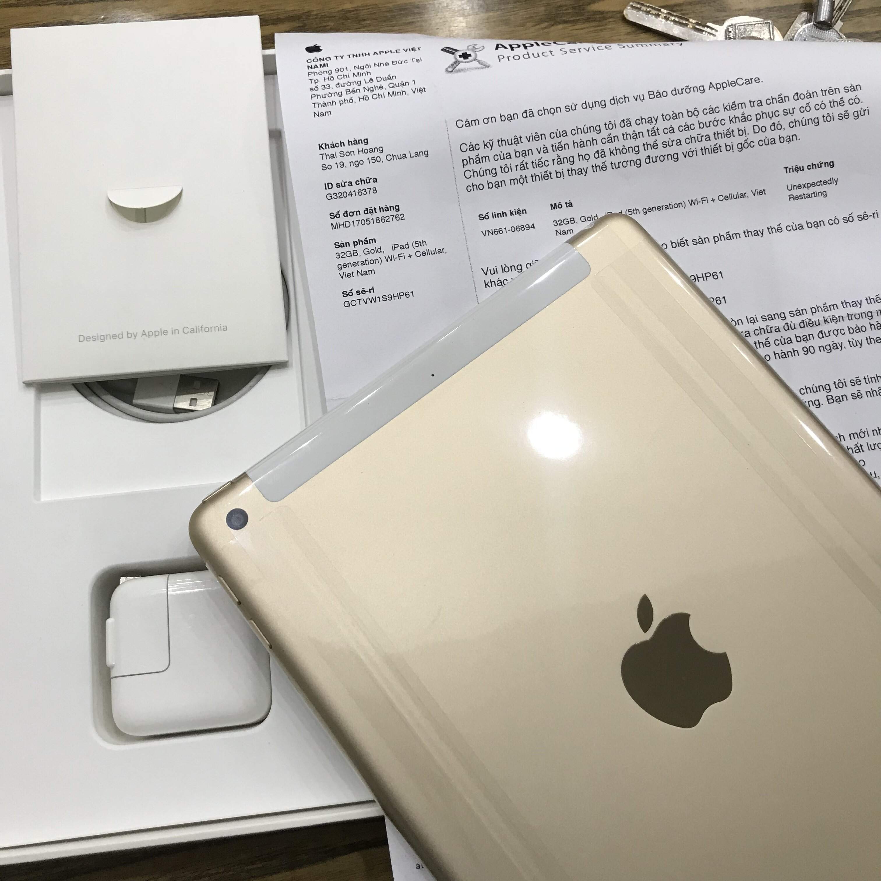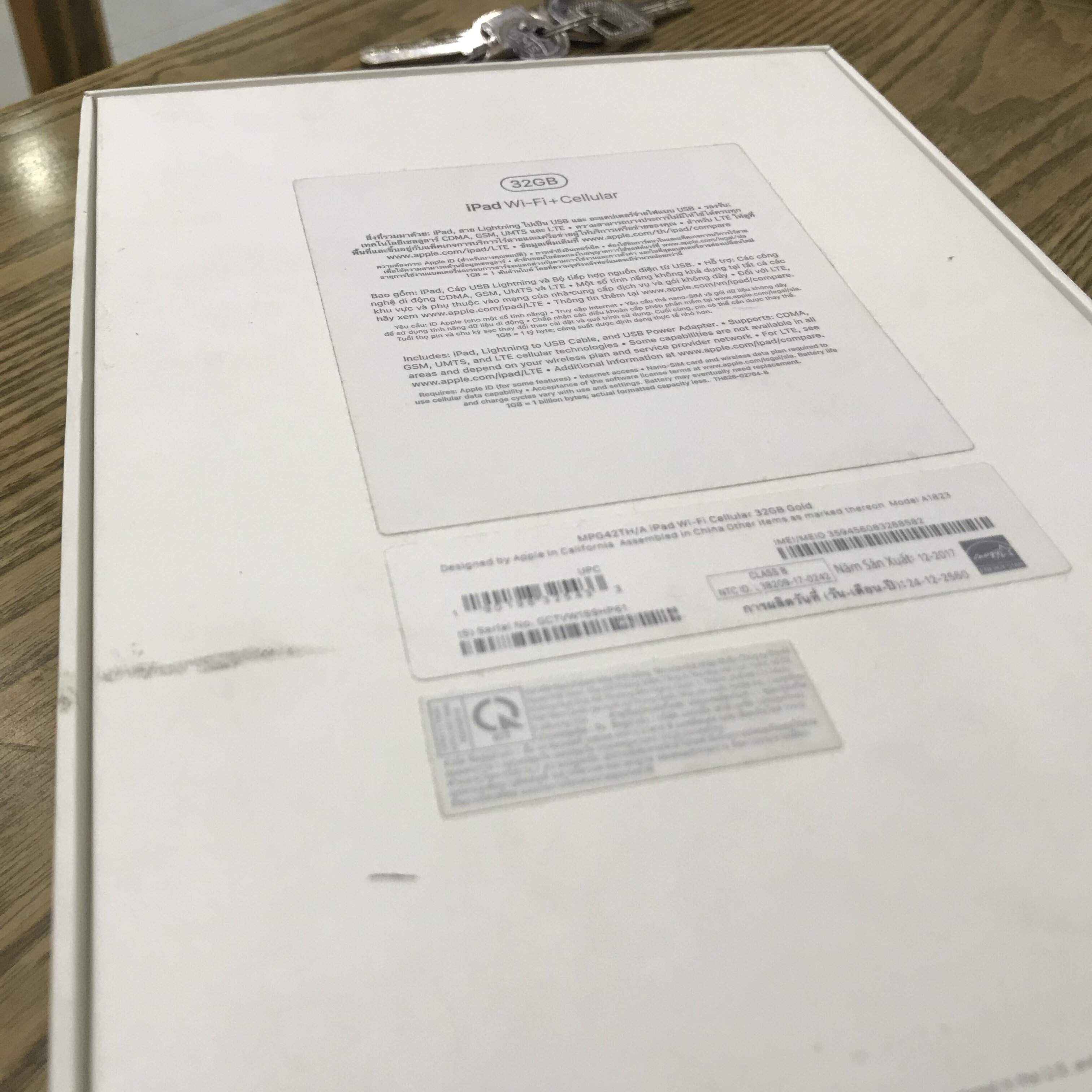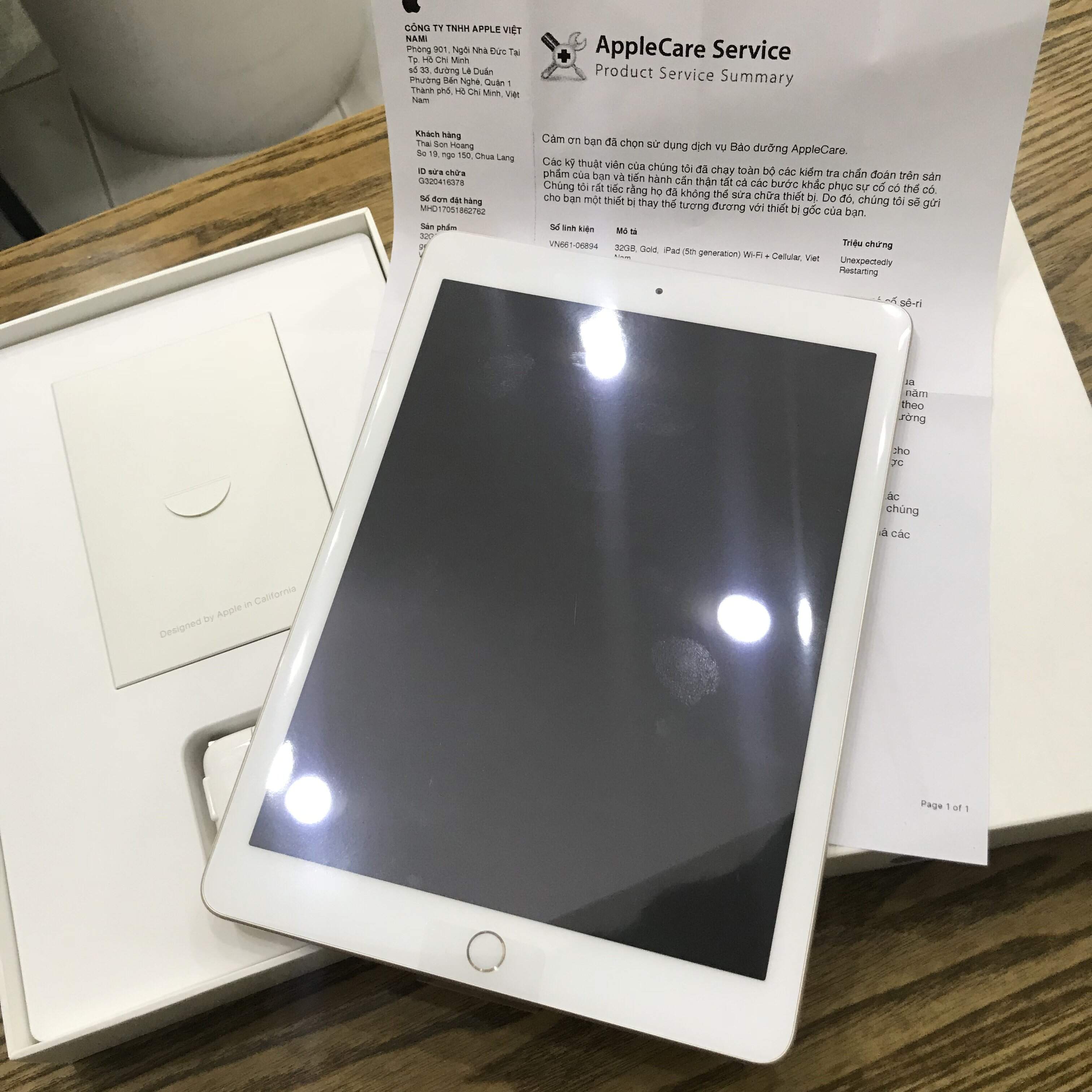 IPad Gent 5 2017 32gb gold 4G + wifi TBH new 100% chưa active nóng bỏng tay vừa được TTBH đổi mới nguyên hộp và phụ kiện zin máy cũ kèm phiếu trả bảo hành của hãng kích hoạt lên còn bảo hành dài 1 đổi 1 đến 2/2019 !