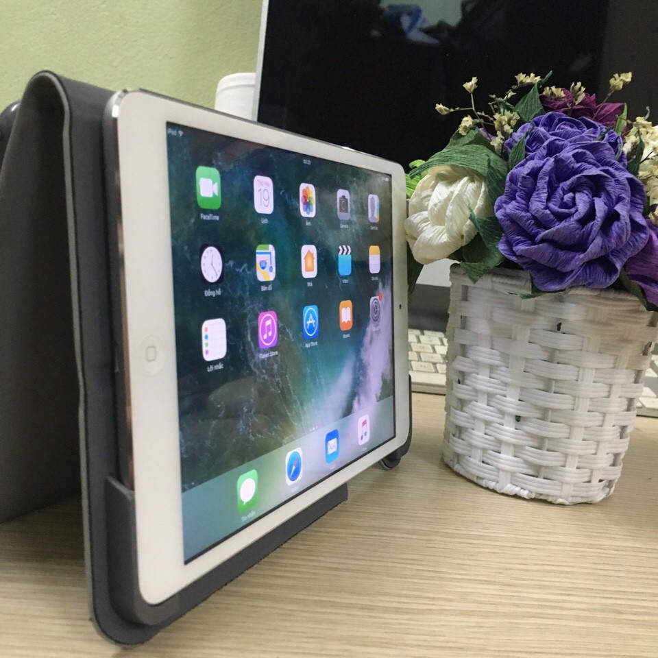 Máy hình thức còn rất đẹp, mới đến 99%, đang dùng cực ổn định luôn. Máy này bản 16G bản wifi. Máy có đầy đủ phụ kiện sạc cáp. Máy có bao da bàn phím (thêm 600k) rất là đẹp, dùng siêu tiện lợi luôn.