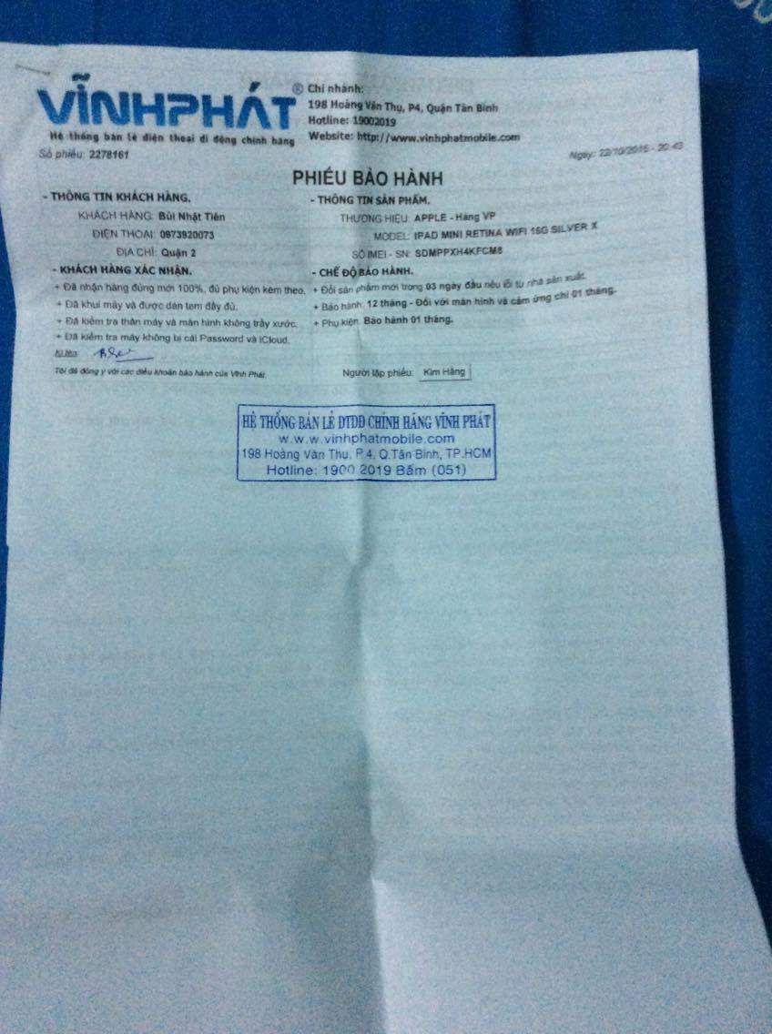 nguồn gốc: vĩnh phát mobile, còn bh máy hơn 9 tháng + bh miếng dán màn hình (giống tgdđ, xài chán cứ tháo ra đem cho nó dán mới).