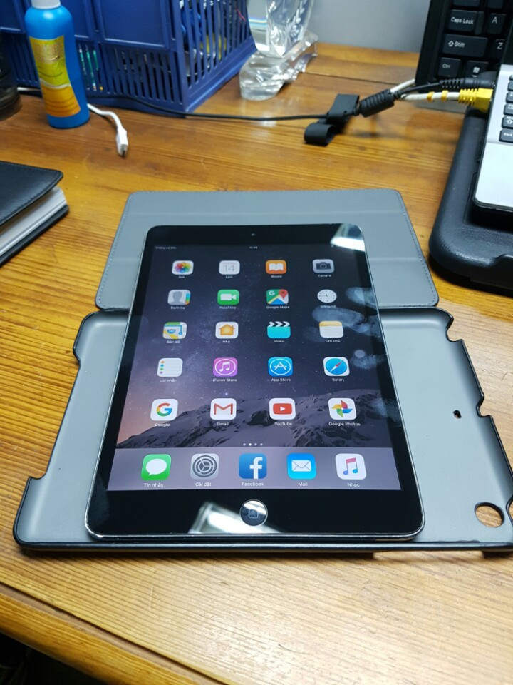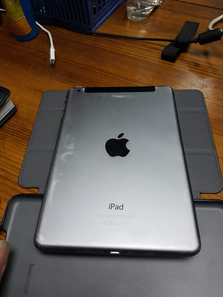 Cần bán em ipad mini 2 màu đen, viền bị móp nhiều mặt lưng bị xước nhưng kính cam và mặt trước ok,tặng kèm bao da chính hãng hoco,( bản đầy đủ 3g và wifi),