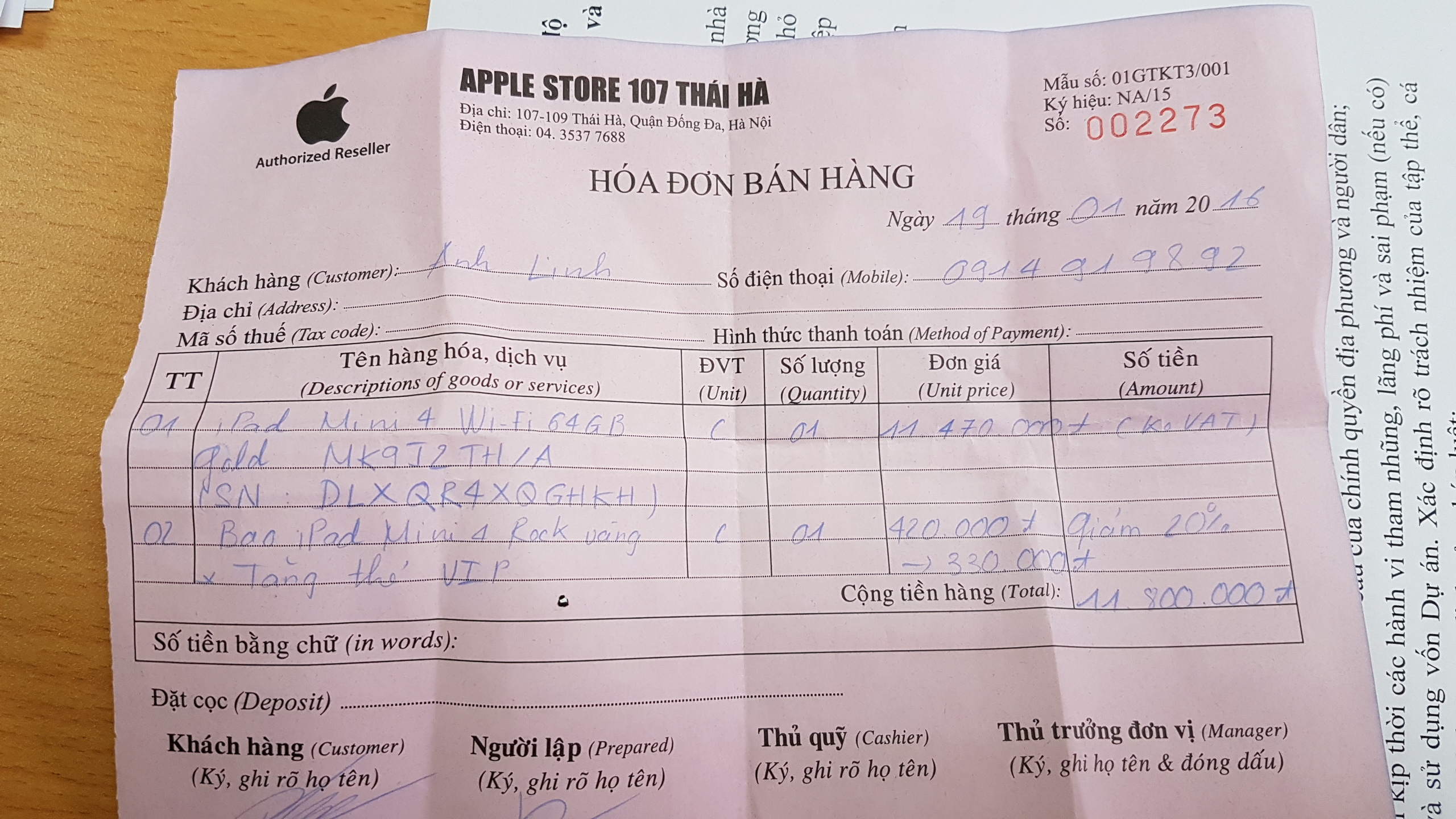 Em có con Ipad mini 4 Wifi only 64GB Gold mua ngày 19/01/2016 muốn bán để lên đời ipad pro 9.7 inch Serial Number: DLXQR4XQGHKH Bác nào có nhu cầu call or SMS: 0914919892
