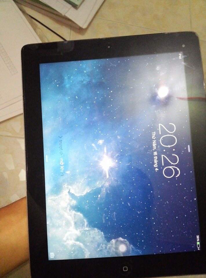 -có 1 con ipad4 3g quốc tế không sử dụng được mạng VN do người thân xach tay về nay muốn bán cho bn nào có nhu cầu mọi chức năng đều ổn chạy phà phà có dán keo mặt sau vá màn hình,chày nhẹ ở 2 góc dưới.máy như hình có sau nói vậy icloud chính chủ