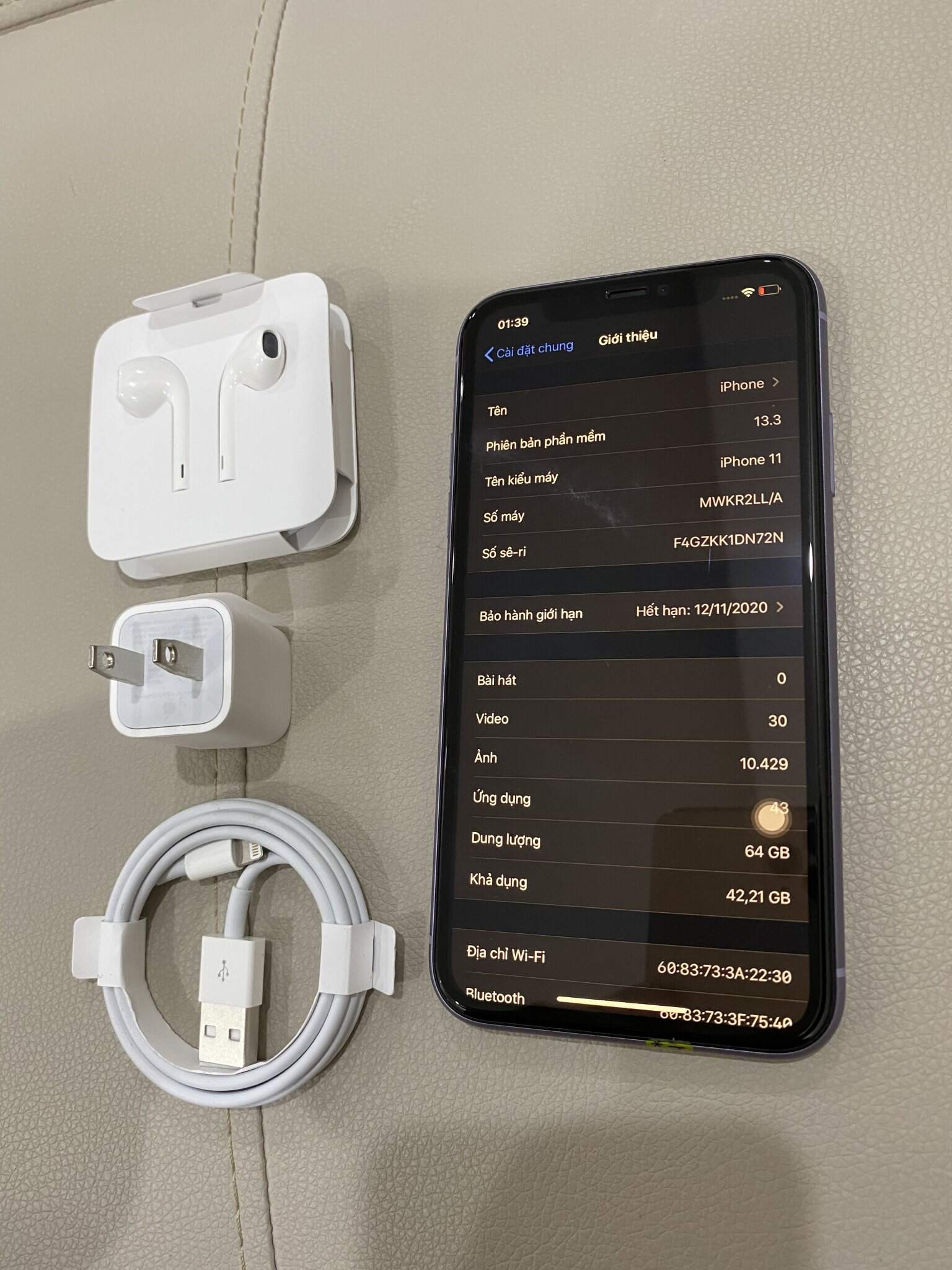 Có em iphone 11 tím 64g cực chất mới gởi từ Mỹ về new 100% chưa qua sử dụng, chỉ mới active lên kiểm tra bên kia xong gửi về luôn. Còn bảo hành apple đến 12/11/2020. Máy quá chất nên không có gì phải giới thiệu nhiều. giá ra đi : 15tr5 ( máy trần) lấy thêm bộ phụ kiện zin bóc máy thêm 600k. Mua bán tại nhà , bao test 7 ngày lỗi hoàn tiền. Lh : XXX