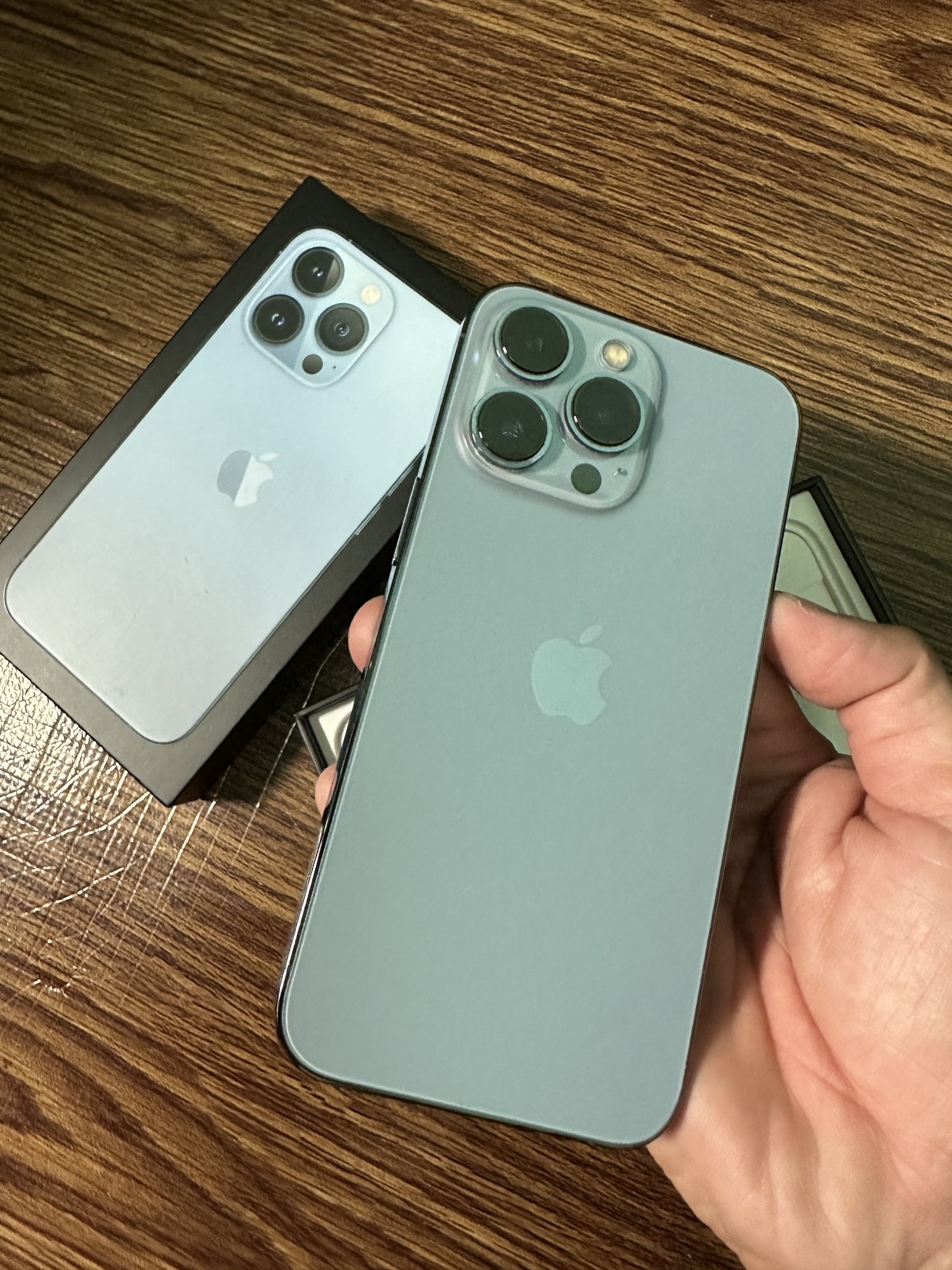 Lên đời 14 ProMax nên em dư ra cây iPhone 13 Pro 256G Xanh sierra, máy fullbox đủ bộ như mới 99,9% do em chỉ xài làm máy phụ nên còn đẹp long lanh.