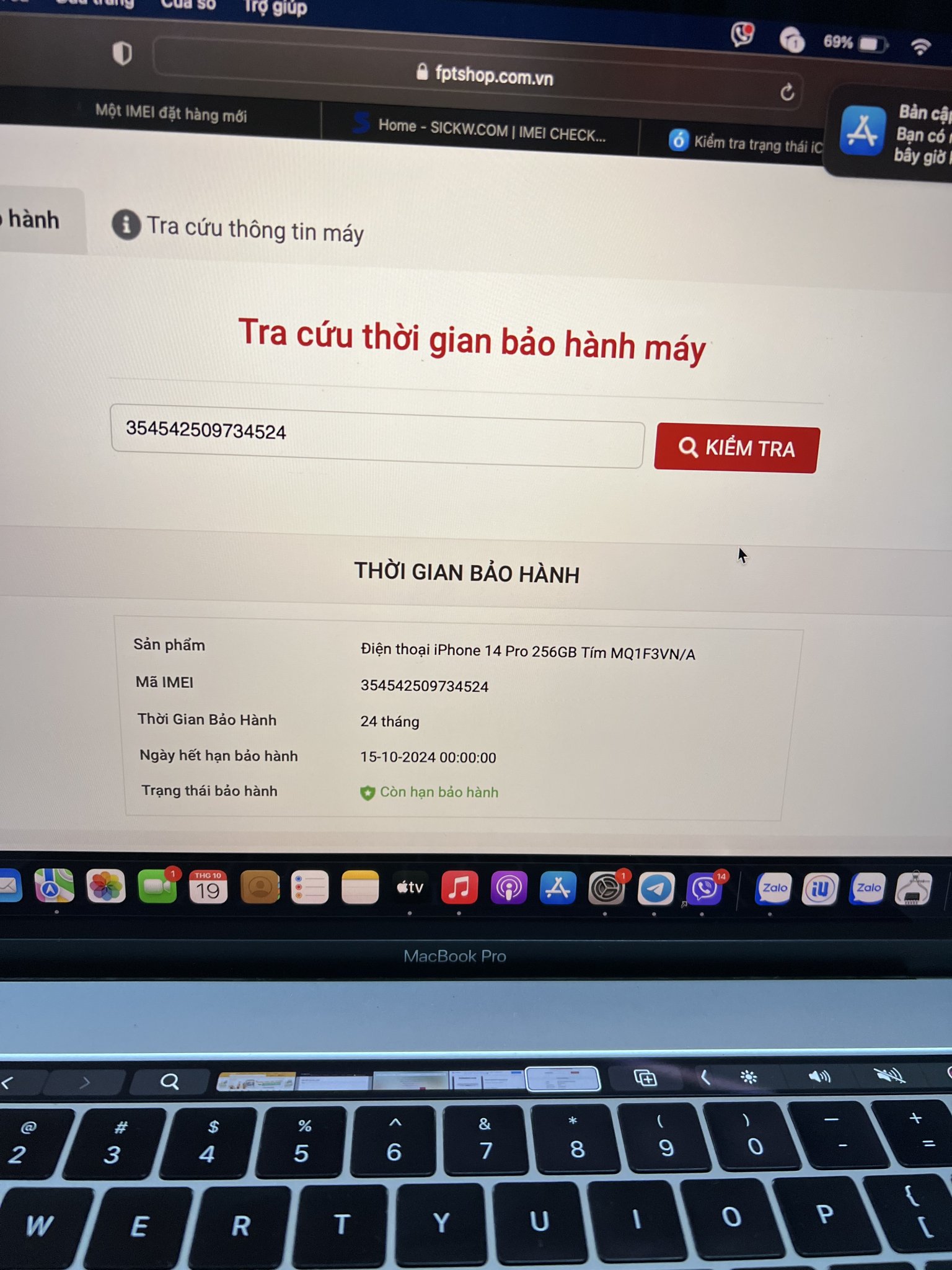 iPhone 14 Pro 256G Tím, active online 17/10 FPT