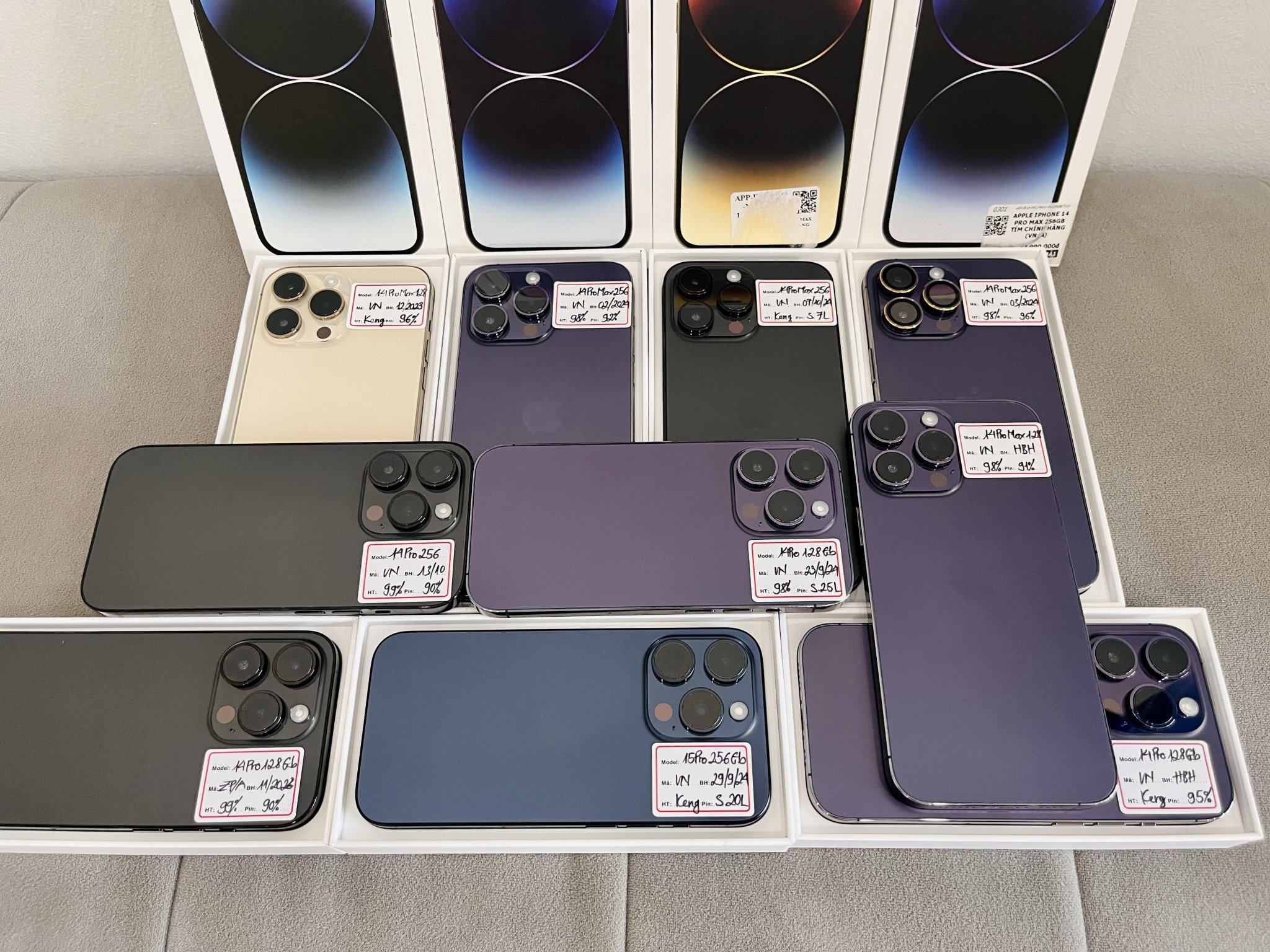 Giá 14ProMax mới tăng quá. Thật tình cờ shop lại có ít giá lại phủ lý vô cùng. Tất cả zin chất 100%, K ZIN TẶNG MÁY.