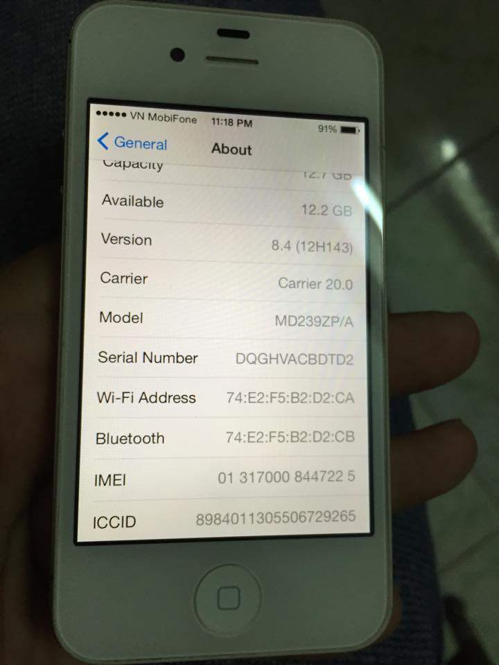 Iphone 4s trắng 16gb ZP/A lỗi wifi dò không ra