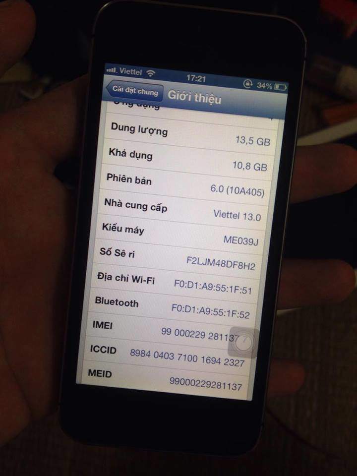 Có con iphone 5 lock đen ios6.0 JA/16G độ vỏ 5s hình thức đẹp ngon lanh không lỗi lầm chưa sửa chữa.