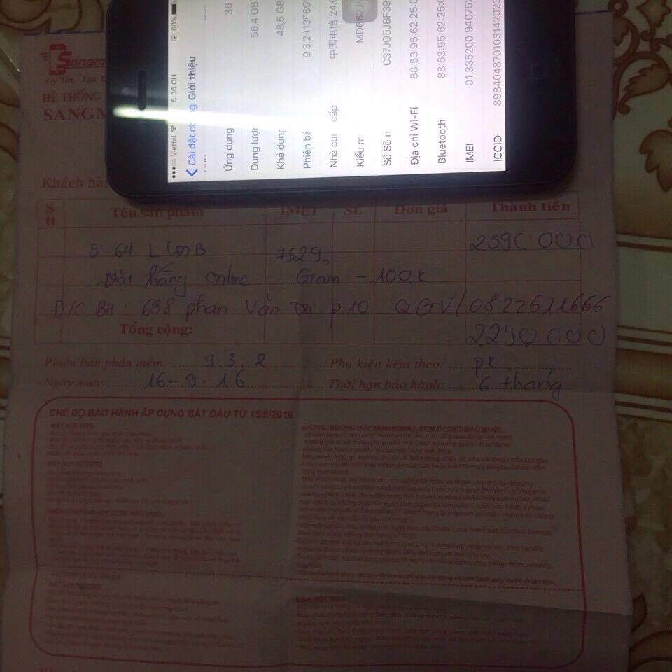 Cần bán Iphone 5 lock nhật Softbak màu đen 64gb hàng mua Sangmobile còn bảo hành. Máy như hình có trầy sướt chút đỉnh hiện trạng y như lúc mua không dán hay ốp gì hết do dùng kĩ nên ko cần mấy cái đó,mới mua thêm sim ghép 100k chứ sim lúc mua theo máy dở quá hư rồi. Ios 9.3.2.Lúc mua pin khá yếu nên có đem lên sangmobile xem và đã thay pin mới cho mình,mình mua dùng chứ ko sửa chữa thay tháo làm gì.Ae mua thì đem ra sangmobile fix lỗi lại dùm,ko hiểu sao đổi sim khác lại mất fix lỗi 101. Máy sạc cáp sim ghép tai nghe. Ae xem đánh giá,có nhu cầu thì liên hệ mình,bớt 50k chắc giá 2triệu nên đừng kì kèo nhau mất thời gian,còn ở đâu rẻ hơn thì mua ở đó.LH 01672500776, Bạch Đằng P2 Tân Bình gần ngã 6 Gò Vấp.