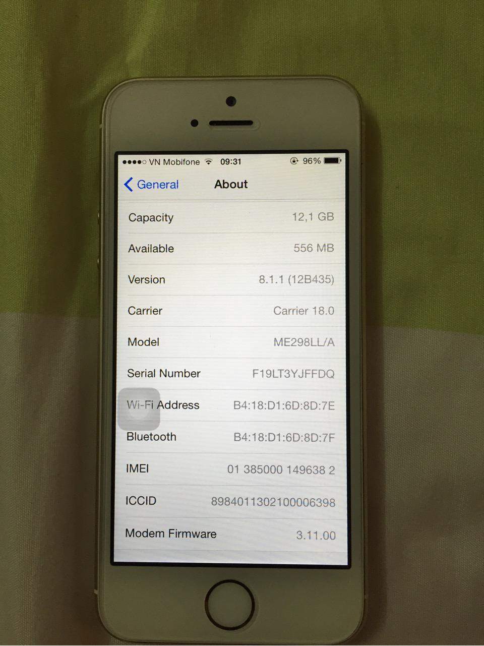 IPHONE 5S ( GOLD ) - FULLBOX - VERSION 8.1.1 - HÀNG LL