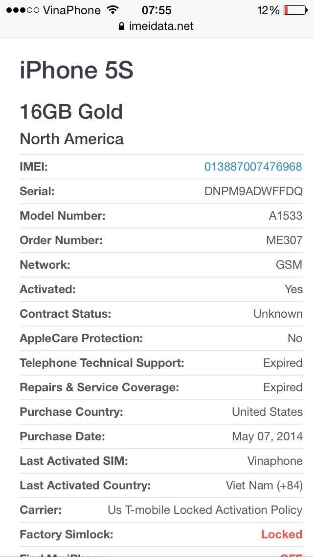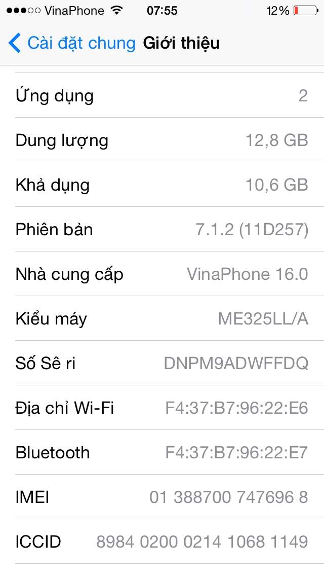 Máy ios 7.12 cực mượt, máy 6.2014 nên pin còn tốt, dùng gọi nghe 2 ngày