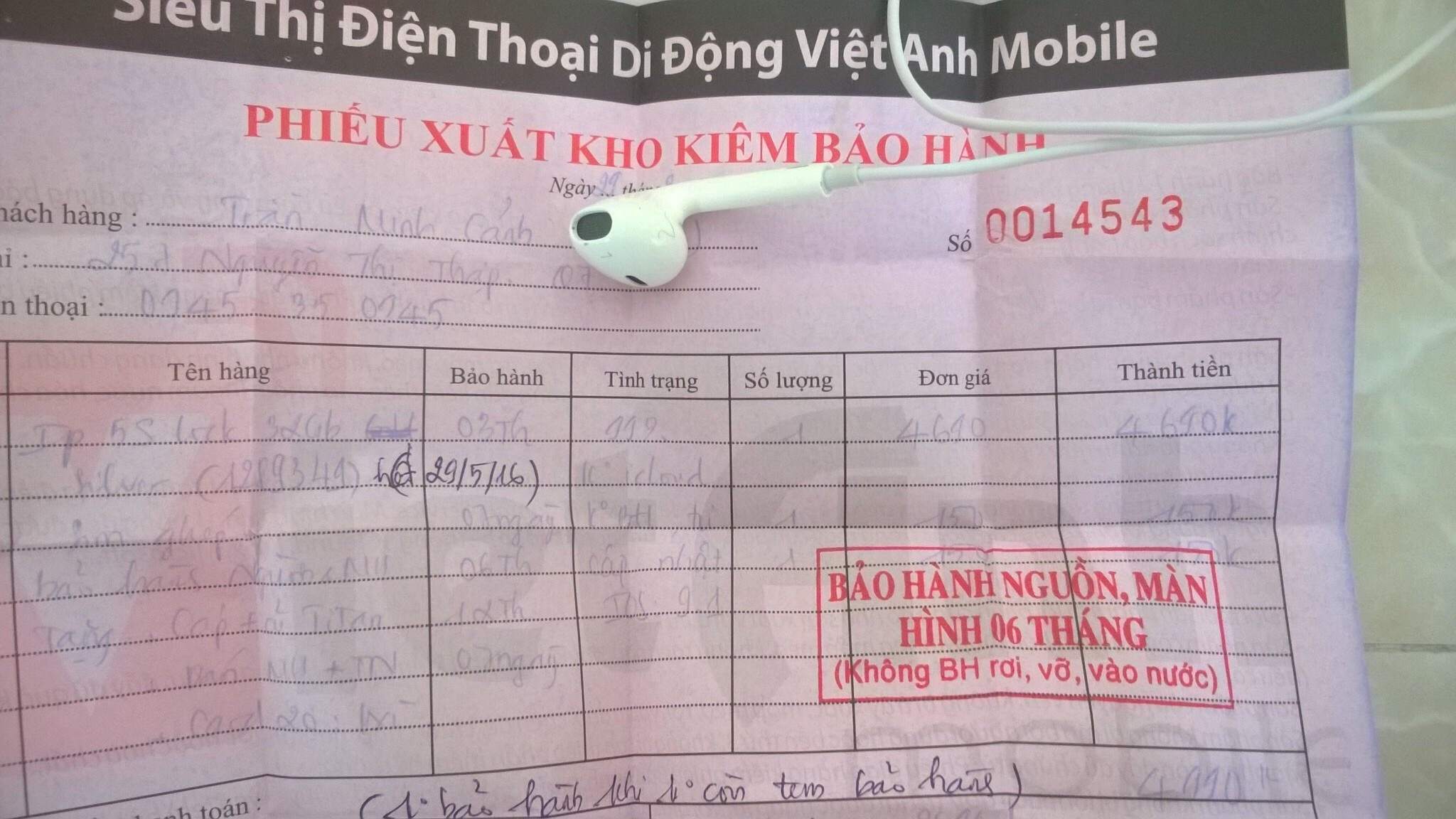 Máy mua ngày 29/02/2016 tại Việt Anh Mobile 4Tr990 (hóa đơn). Mình kẹt nên ra đi nhanh.