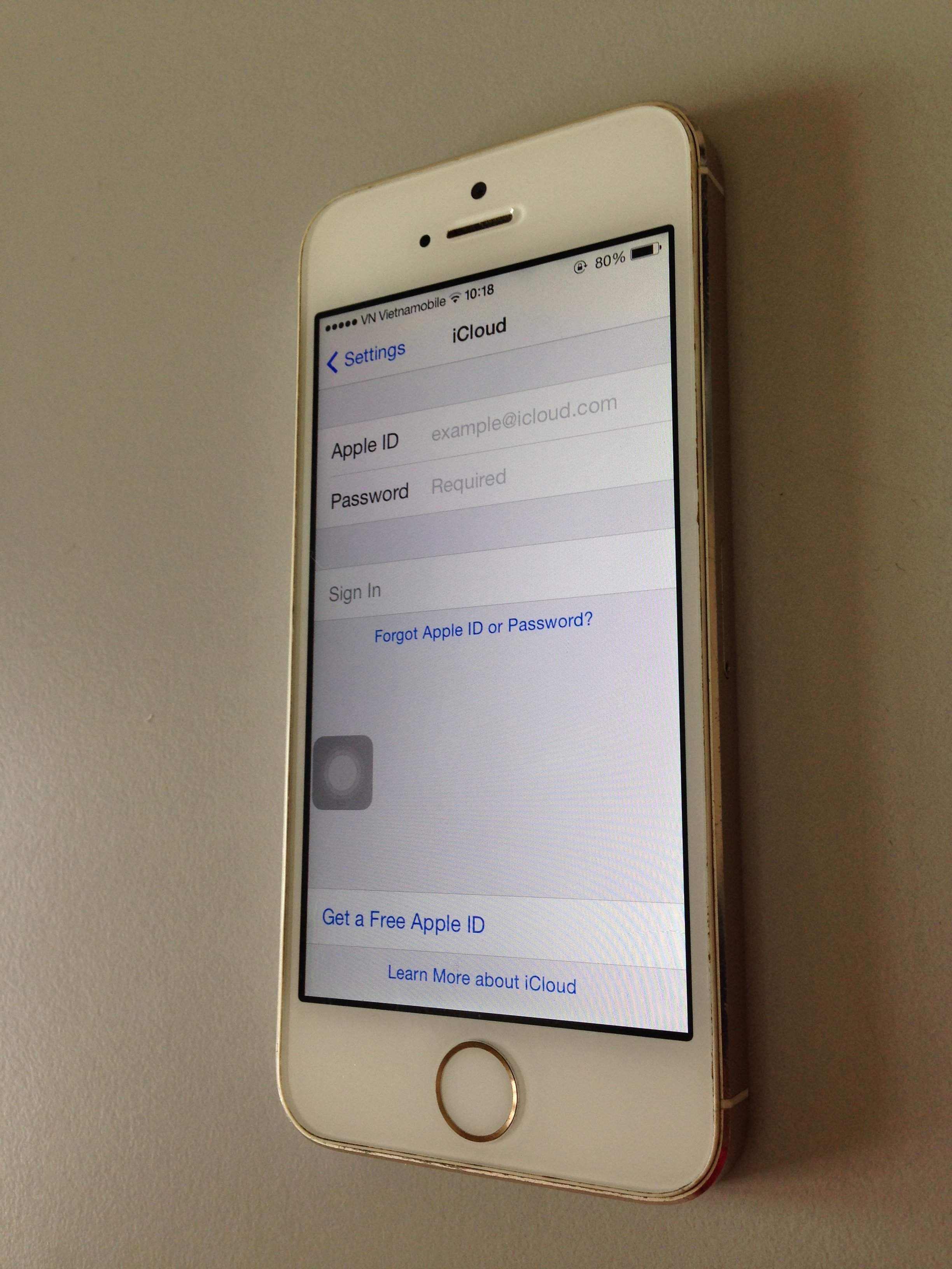 5s quốc tế 16gb gold icloud ẩn, các chức năng dùng bình thương,vẫn đăng nhập icloud dùng bình thường như hình, chỉ ko restore được.