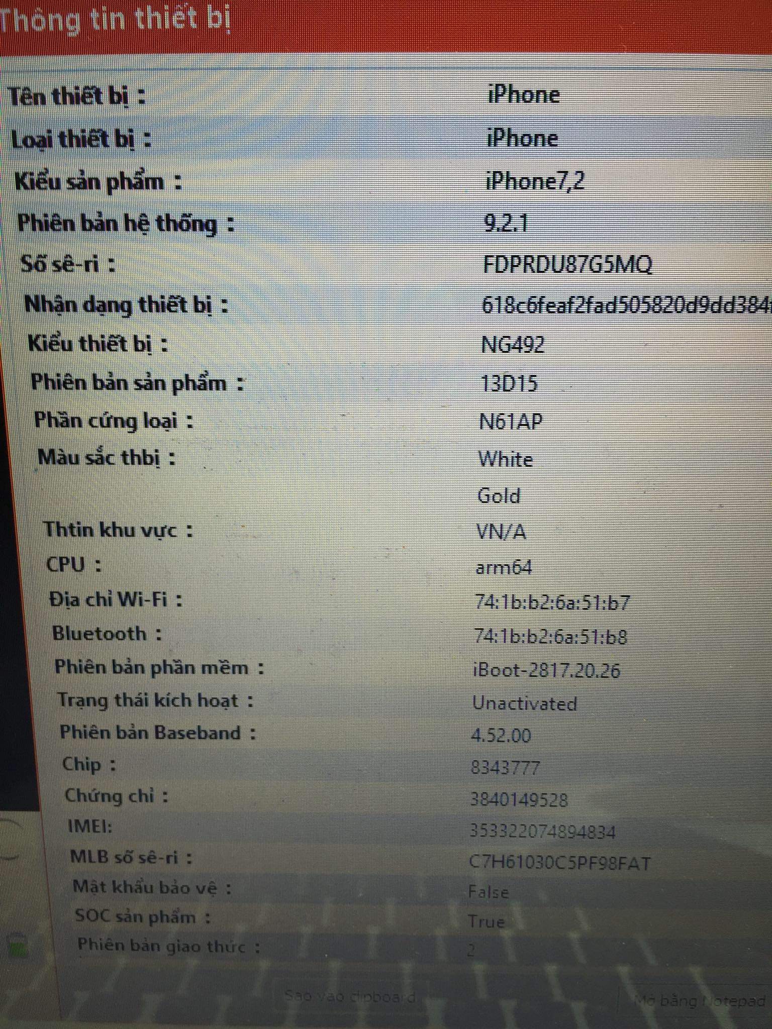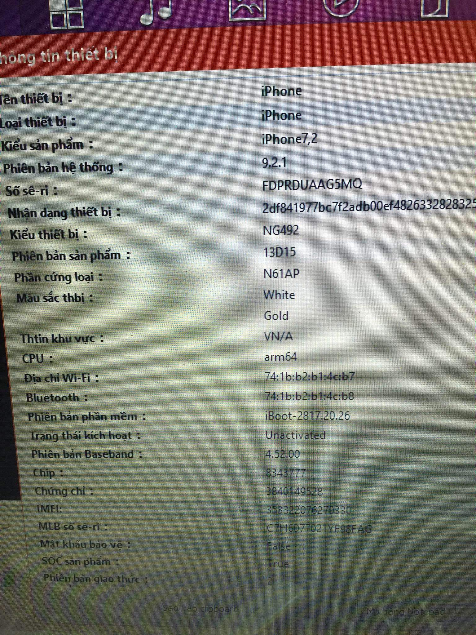 Hàng trả bảo hành fpt . Nguyên seal máy chưa active .Màu gold 16gb quốc tế . thông tin xem trên hình đính kèm