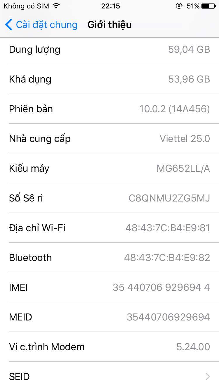 Như trên mình có con IP 6 ios 10 màu Gold bản bộ nhớ cao = 64G,máy mình hình thức đẹp như mới không chê vào đâu được,đánh giá tầm 97-98%,không rơi móp méo hay trầy xước gì,máy nguyên bản chưa sửa chữa thay thế gì luôn. Máy đang hoạt động bình thường,mọi chức năng là hoàn hảo,pin khoẻ nghe gọi bình thường khoảng 2-3 ngày.