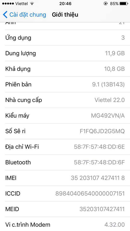 Ké bác chủ. Mình có con ip6 gold 16gb lock nhật docomo fix full tính năng. Ios 8.3 nhẹ mượt. Vân tay nhạy gần bằng 6s ^^. Máy mua tại Mr Zin và còn bảo hành. Có box trùng imei. Phụ kiện có sạc cáp zin. Bác nào cần thì vào topic mình nhé. https://nhattao.com/threads/ban-iphone-6-gold-16gb-lock-nhat-docomo.5939754/#post-58113308