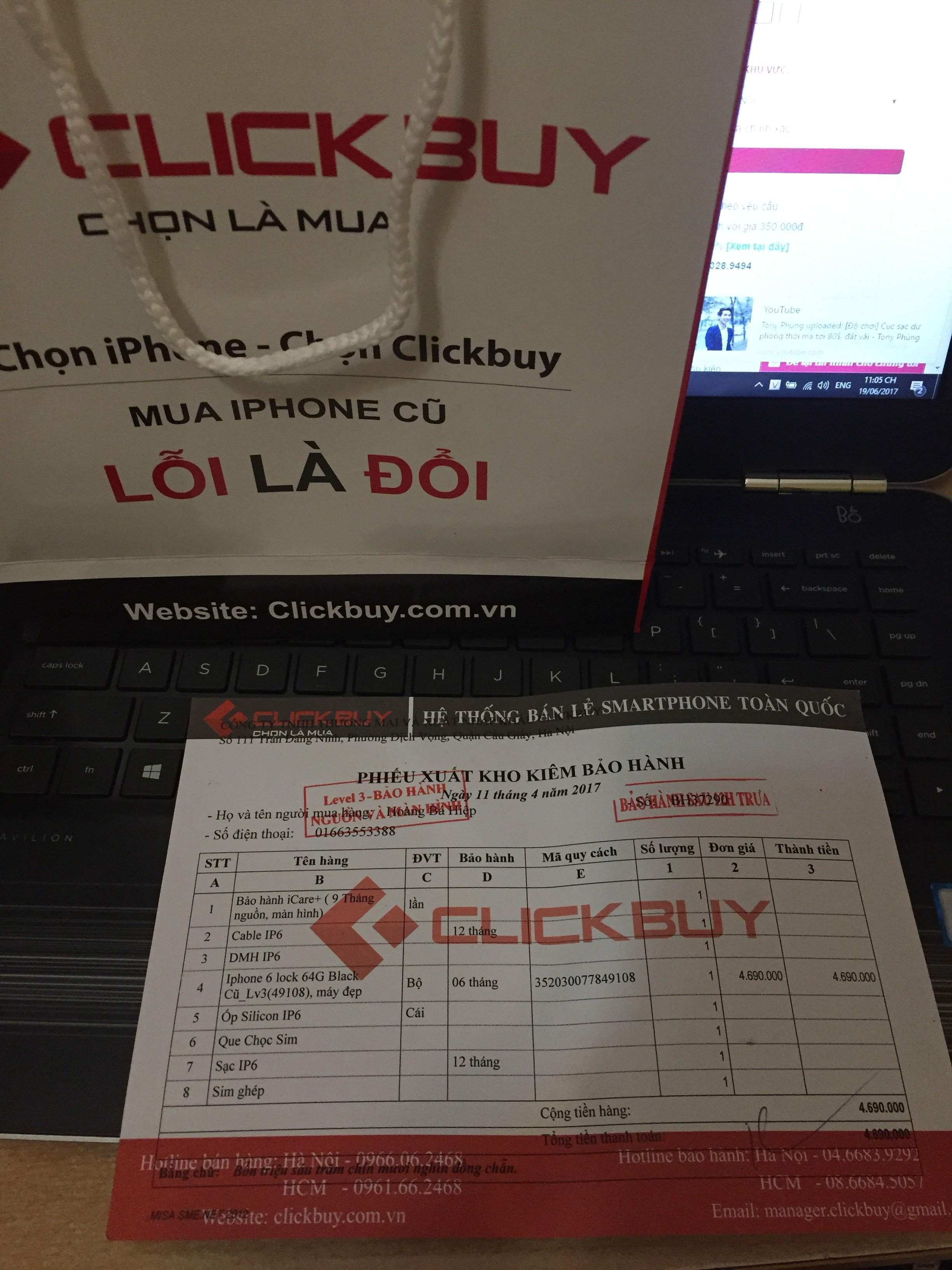 có nhu cầu lên đời máy nên mình muồn bán chiếc iphone 6 64gb lock của mình. Máy mình mới mua ở clickbuy chùa Hà hôm 11/4. Mua kèm bảo hành vàng cả nguồn và màn hình trong 9 tháng. Hiện tại còn 7 tháng bảo hành. Máy mình mua là hình thức 99%. Máy còn nguyên tem bảo hành và giấy tờ bảo hành. Pk có sạc, cáp loại 1 của clickbuy, ốp trong và sim ghép 4g thần thánh. Máy đang chạy ios 10.3.1. Mình bán máy cho người dùng cần sự yên tâm khi sử dụng, không so sánh giá với hàng không rõ nguồn gốc ở trên này