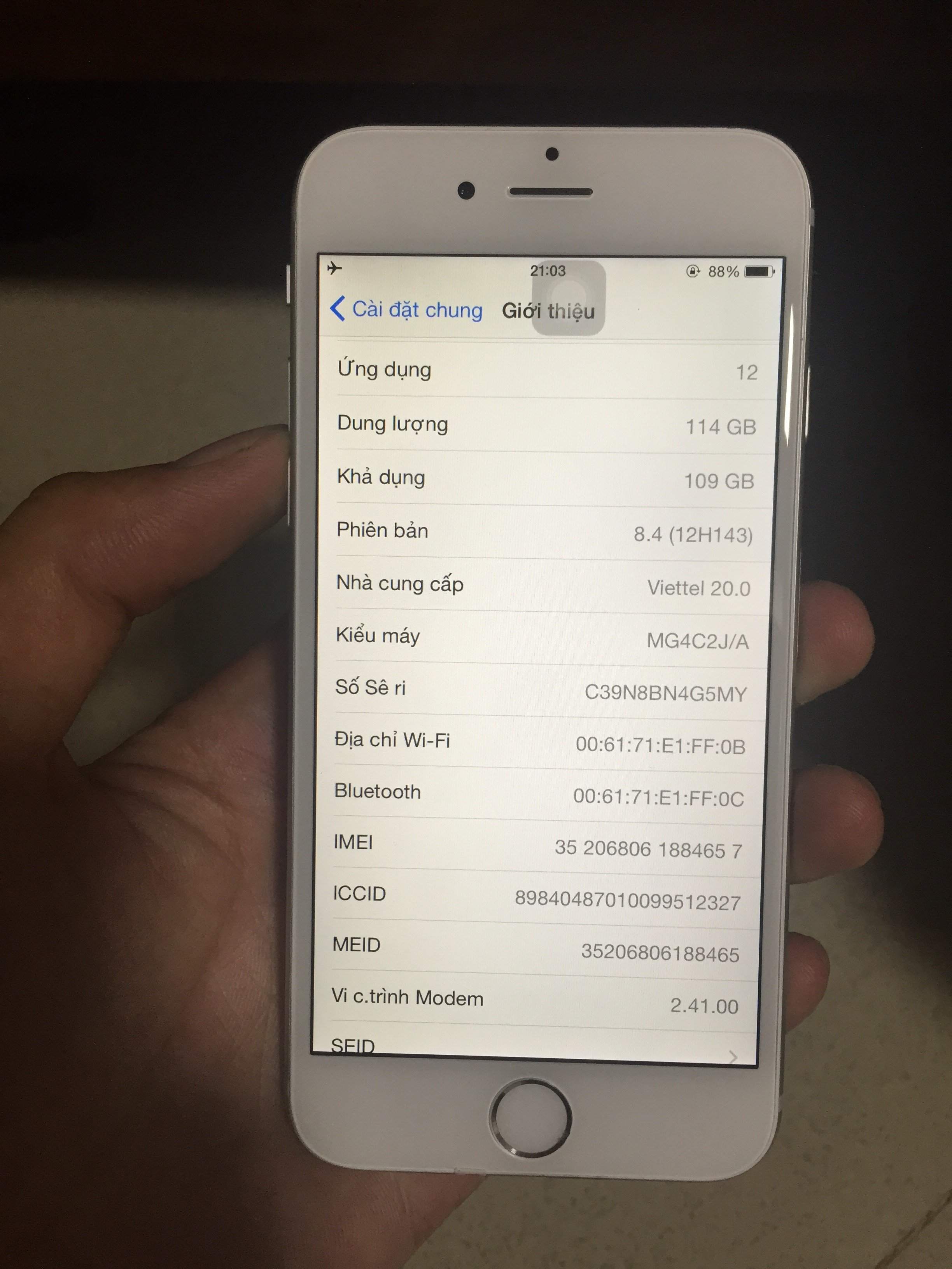 E có chiếc iphone 6 128gb màu trắng lock docomo của Nhật Bổn cần bán. Máy chuẩn ng nhà xách tay trực tiếp từ Nhật. Nguyên zin từ ốc đít.đã fix full lỗi dùng như quốc tế. Máy còn đẹp gần như mới ạ, còn bh chính hãng của apple