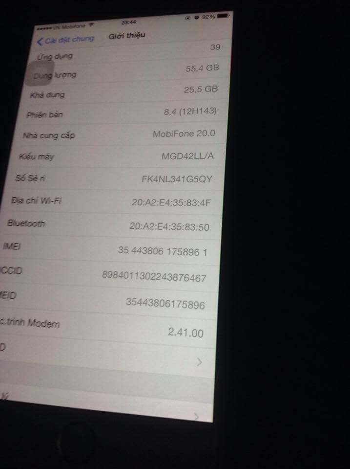 -Máy em lúc đầu mua bên mỹ tự tay em kích hoạt 8961LL/A là imei lúc máy chưa thay main
