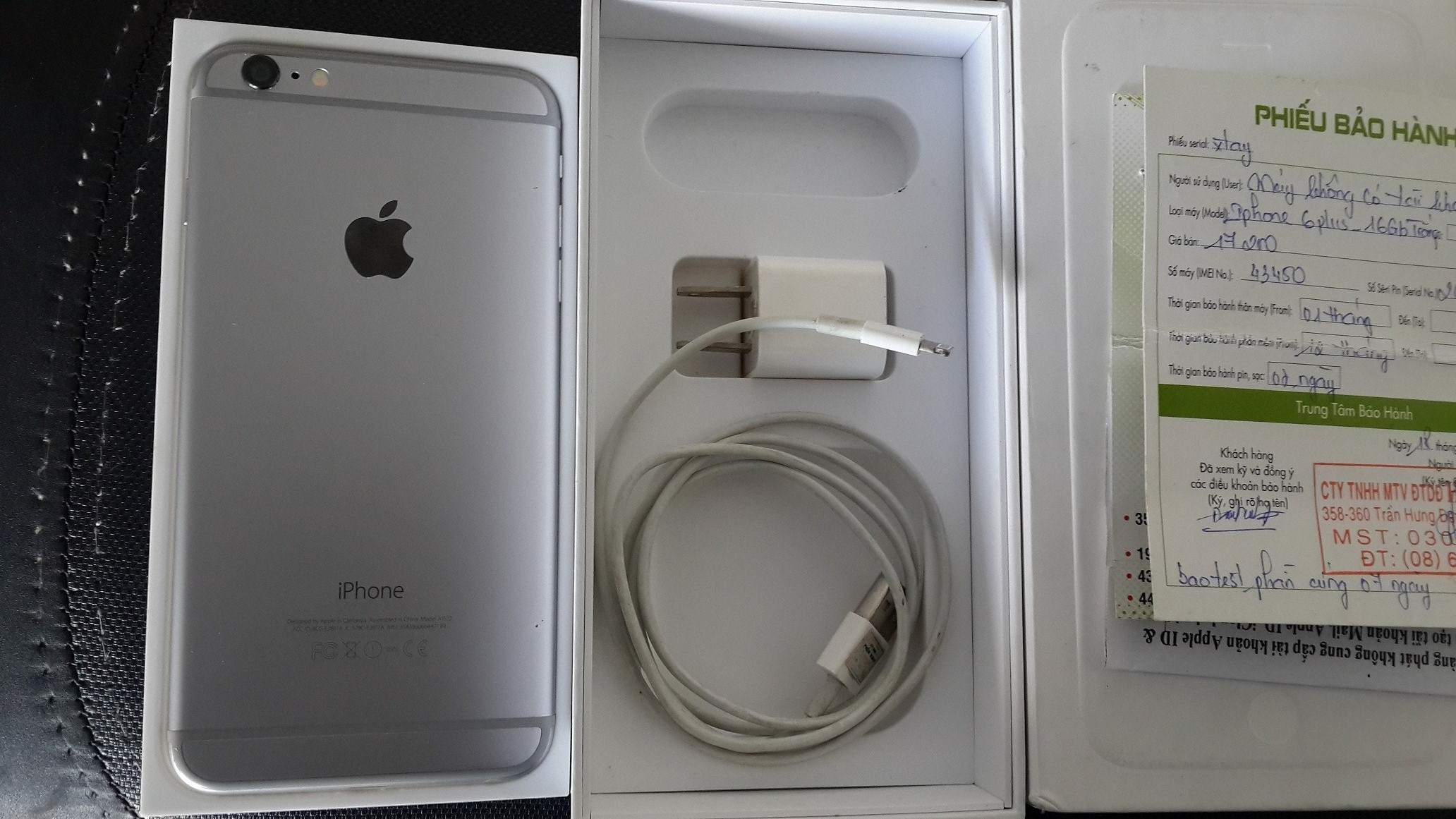 Bán Iphone 6 plus 16G còn bảo hành 6 tháng có giấy bảo hành tại Hoàng Phát. Còn hộp Sạc (tai nghe bị mất) như trong hình.
