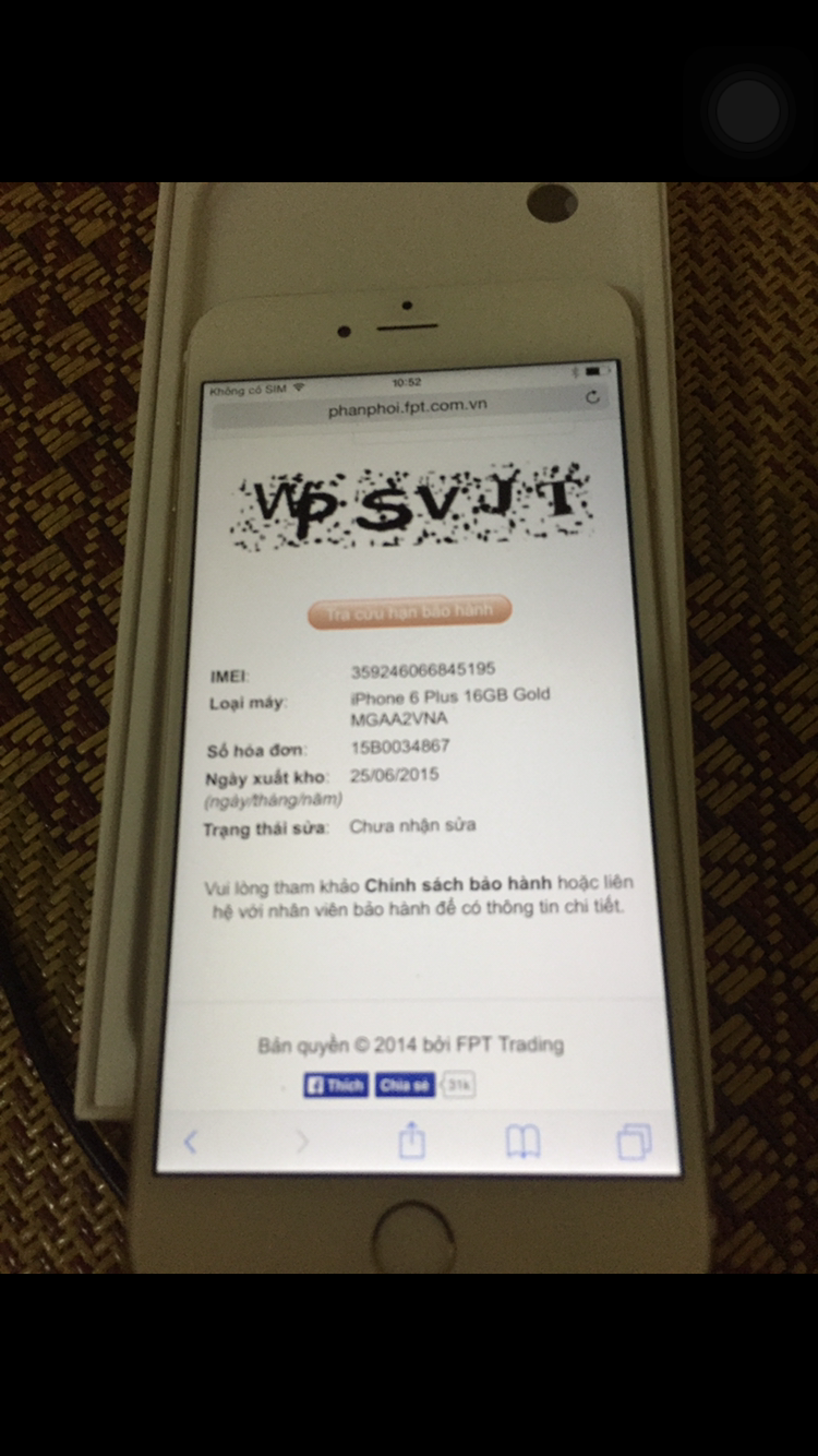 Mình cần bán chiếc iphone 6Plus Gold 16Ghàng fpt còn bảo hàng dài hạn