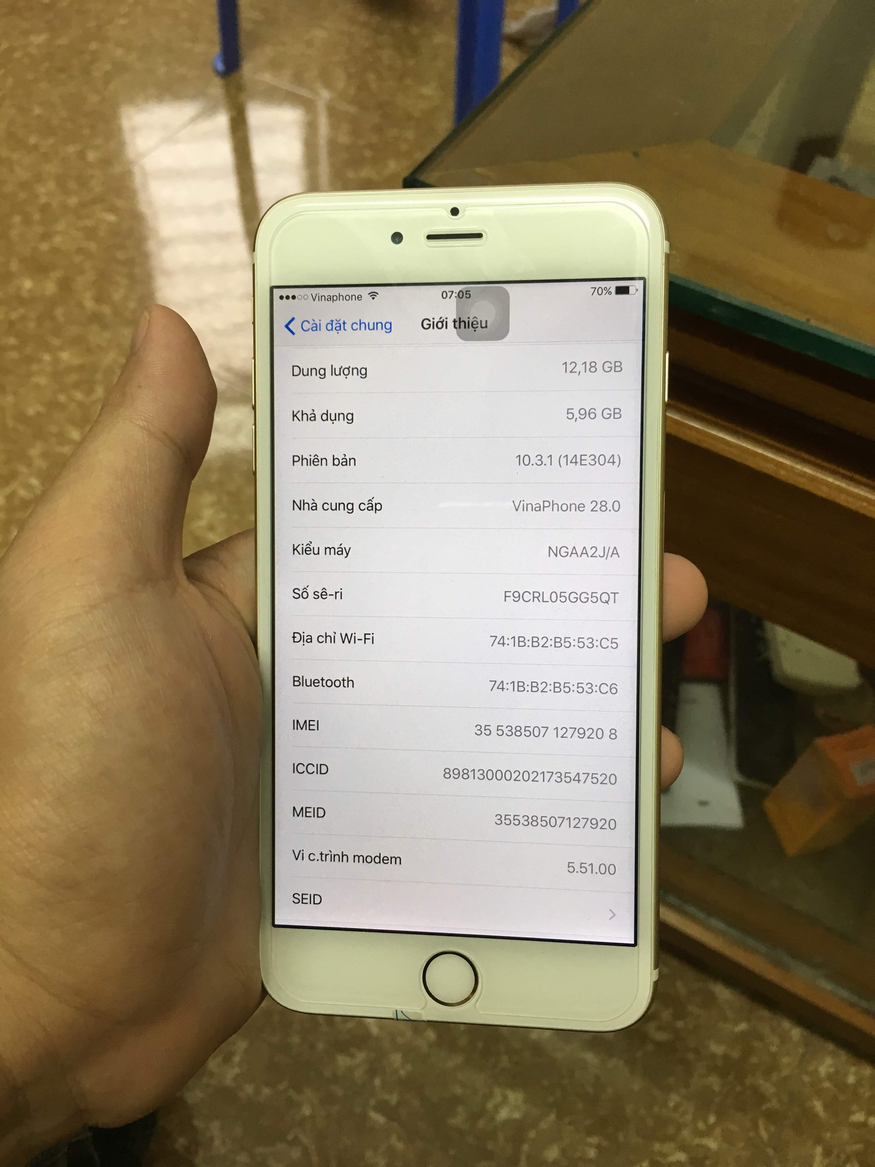 bán chiếc iPhone 6 Plus lock 16g Gold . Máy zin all đẹp keng , pin trâu. Hoàn hảo. Máy trần + sim ghép thần thánh. Giá 5tr5. Đt : 0945550405, 0965551090 Số 02- dịch vụ 06, Mộ Lao, Hà Đông , HN. Bao tes 10 ngày.