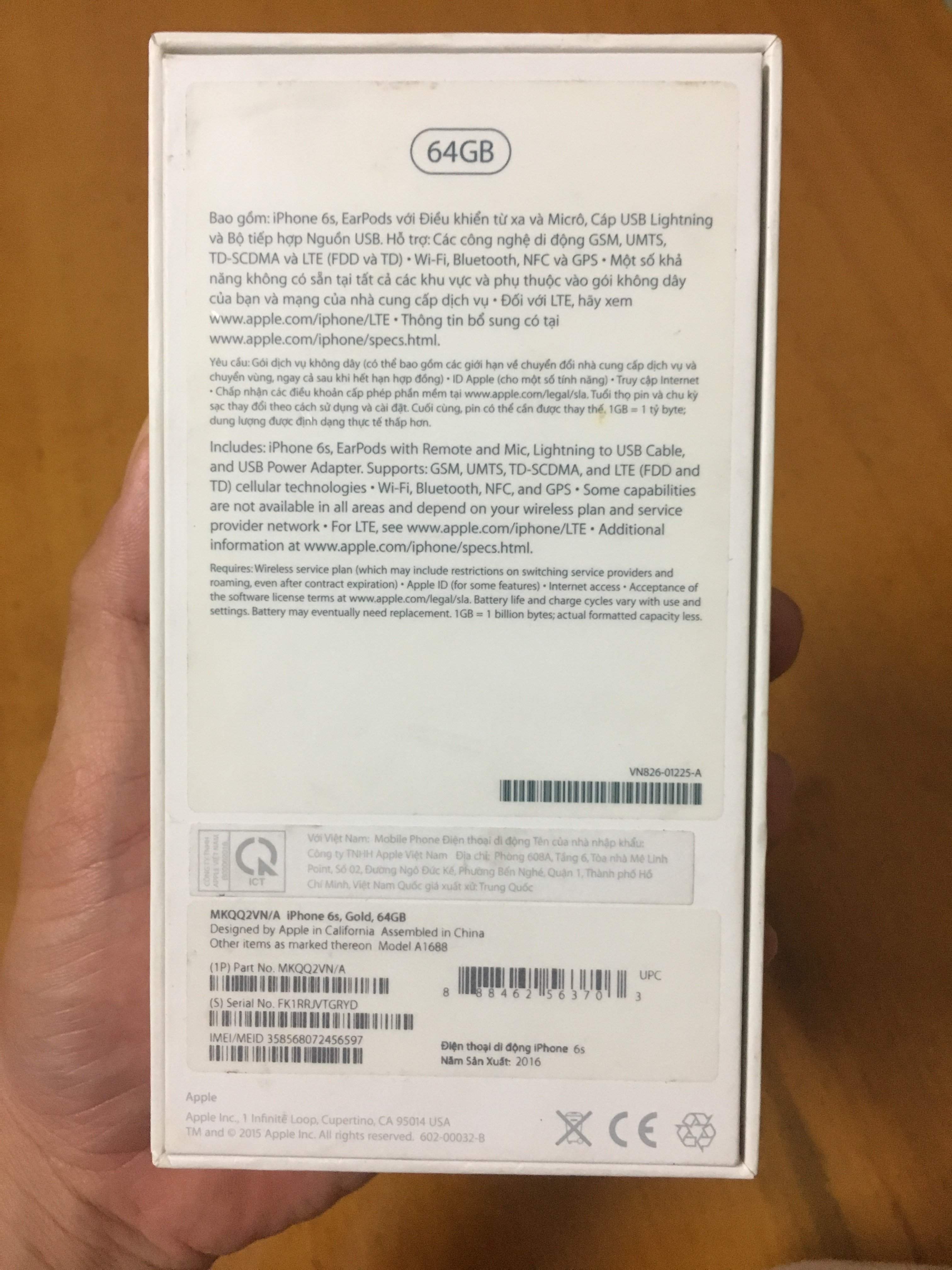 Iphone 6s 64G hàng FPT fullbox bh cuối tháng 10/2017 muốn gl lên đời