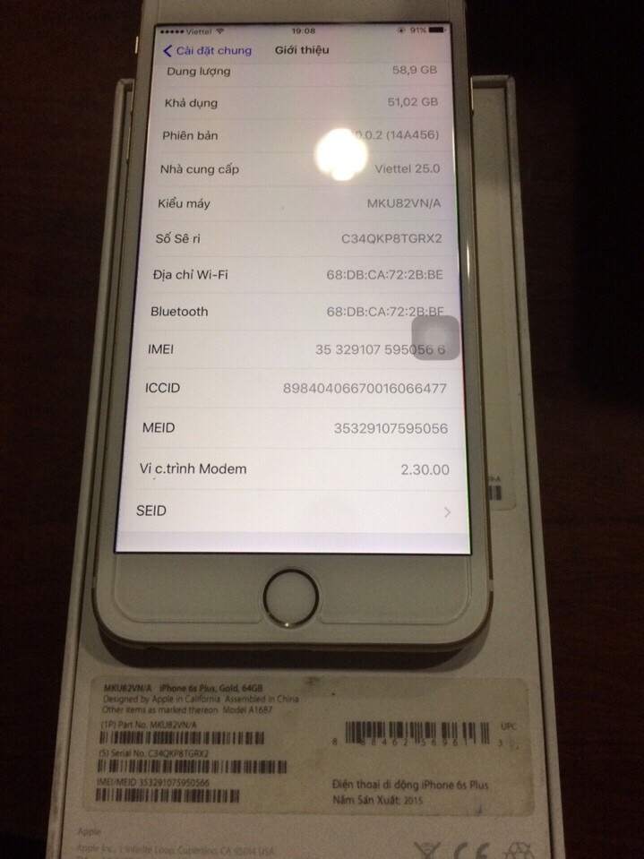 Iphone 6s plus 64G công ty fullbox