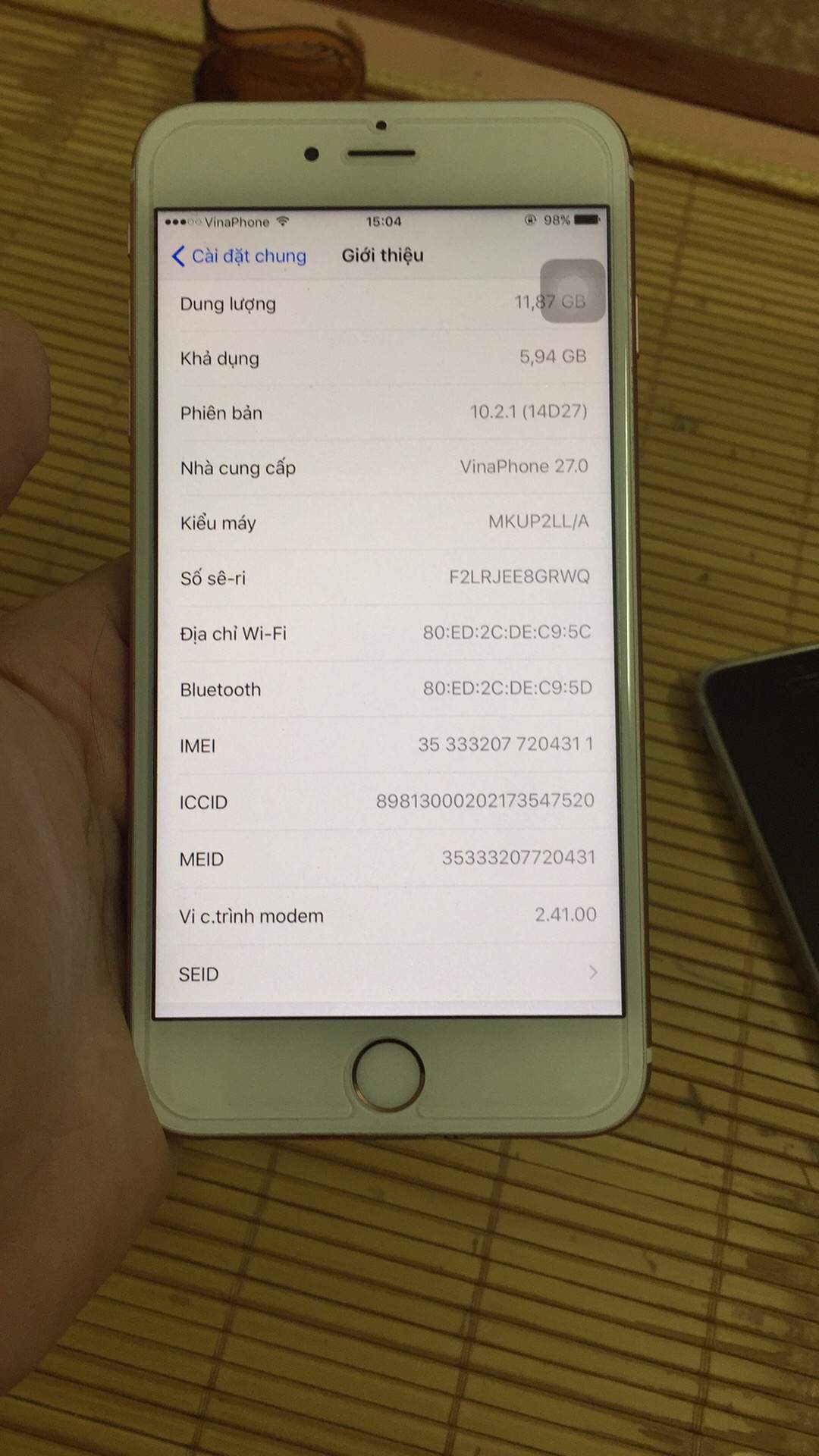 Hình thức không móp méo. Có 1 vài vết oxy hoá ( vỏ zin nó thế. ) đánh giá 98%.