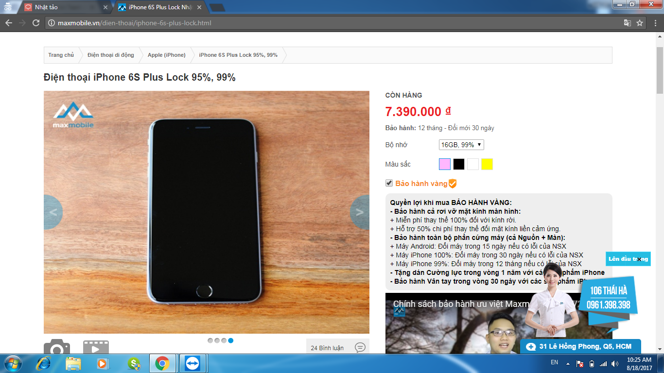 Cần tiền qua đời máy khác nên bán lại iPhone 6s plus 16g lock mỹ mua tại Maxmobile này 1/8, hình thức 99% , bảo hành vàng 1 đổi 1 trong 12 tháng