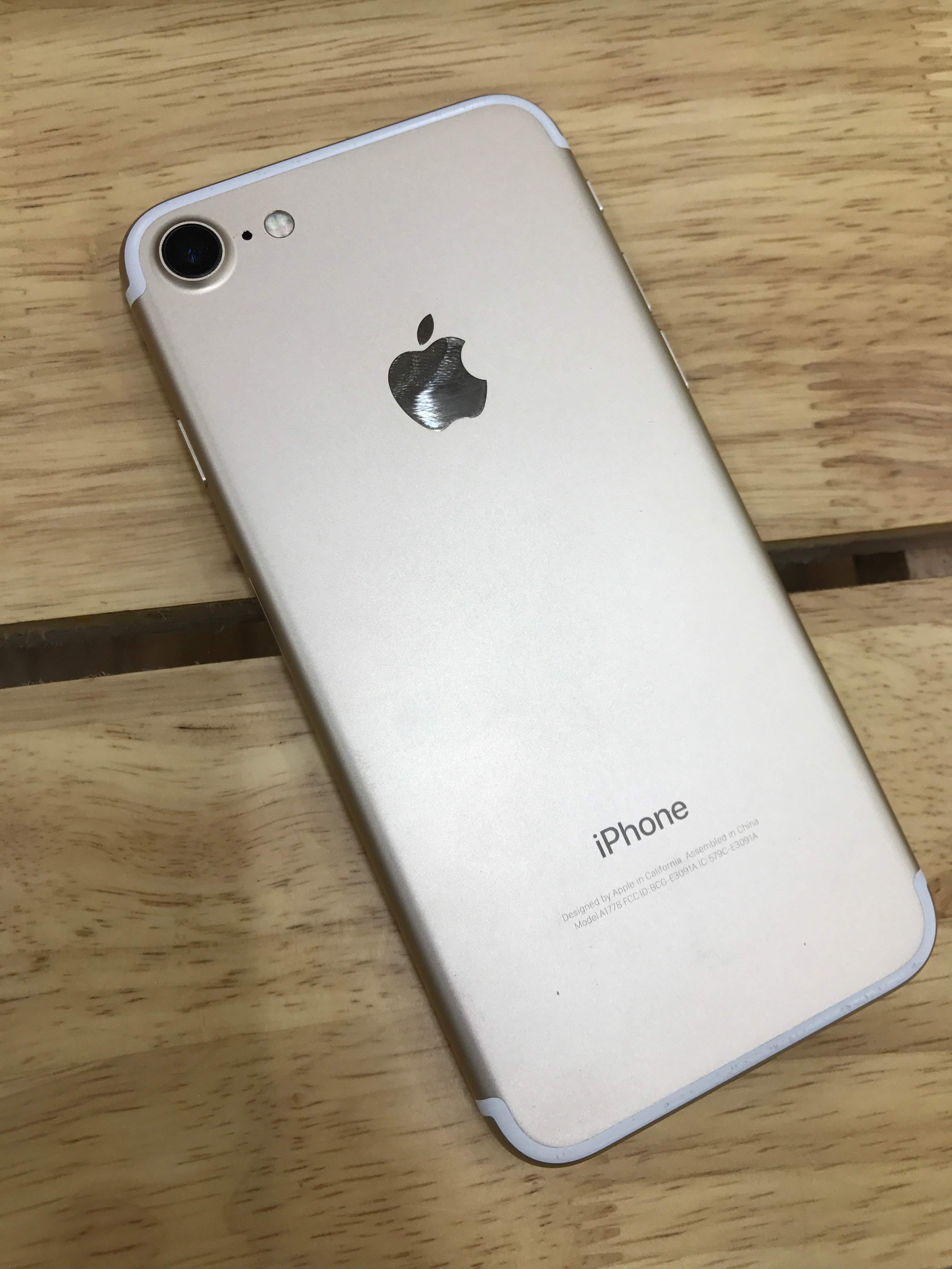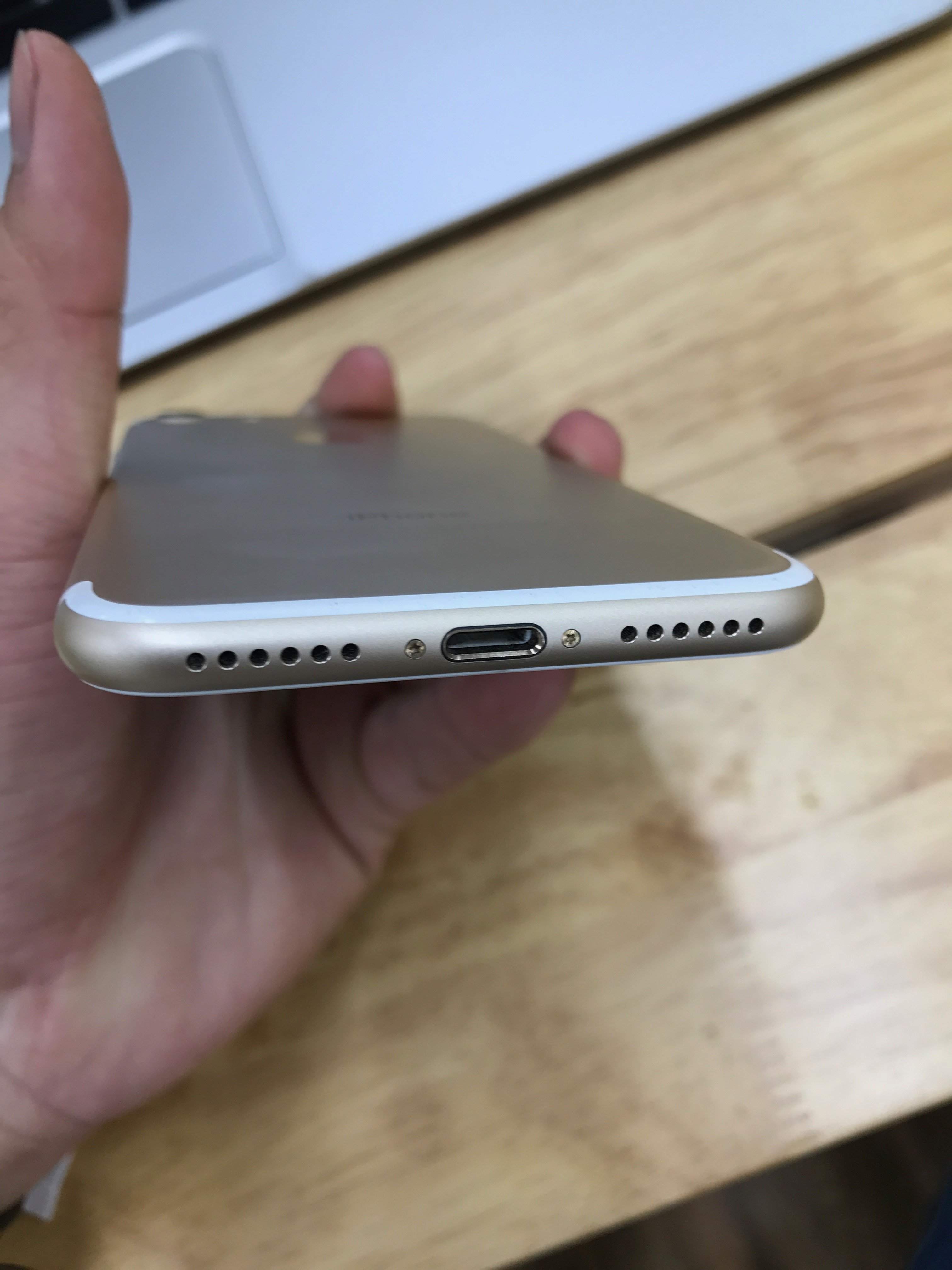 Bán máy iPhone 7 màu Gold như hình, máy nguyên zin từ A-Z, máy còn mới 98% bị trầy nhẹ trên đầu. Máy bán ra bảo hành 3 tháng phần cứng, trọn đời phần mềm. Máy còn bảo hành chính hãng Apple tới 12/2017