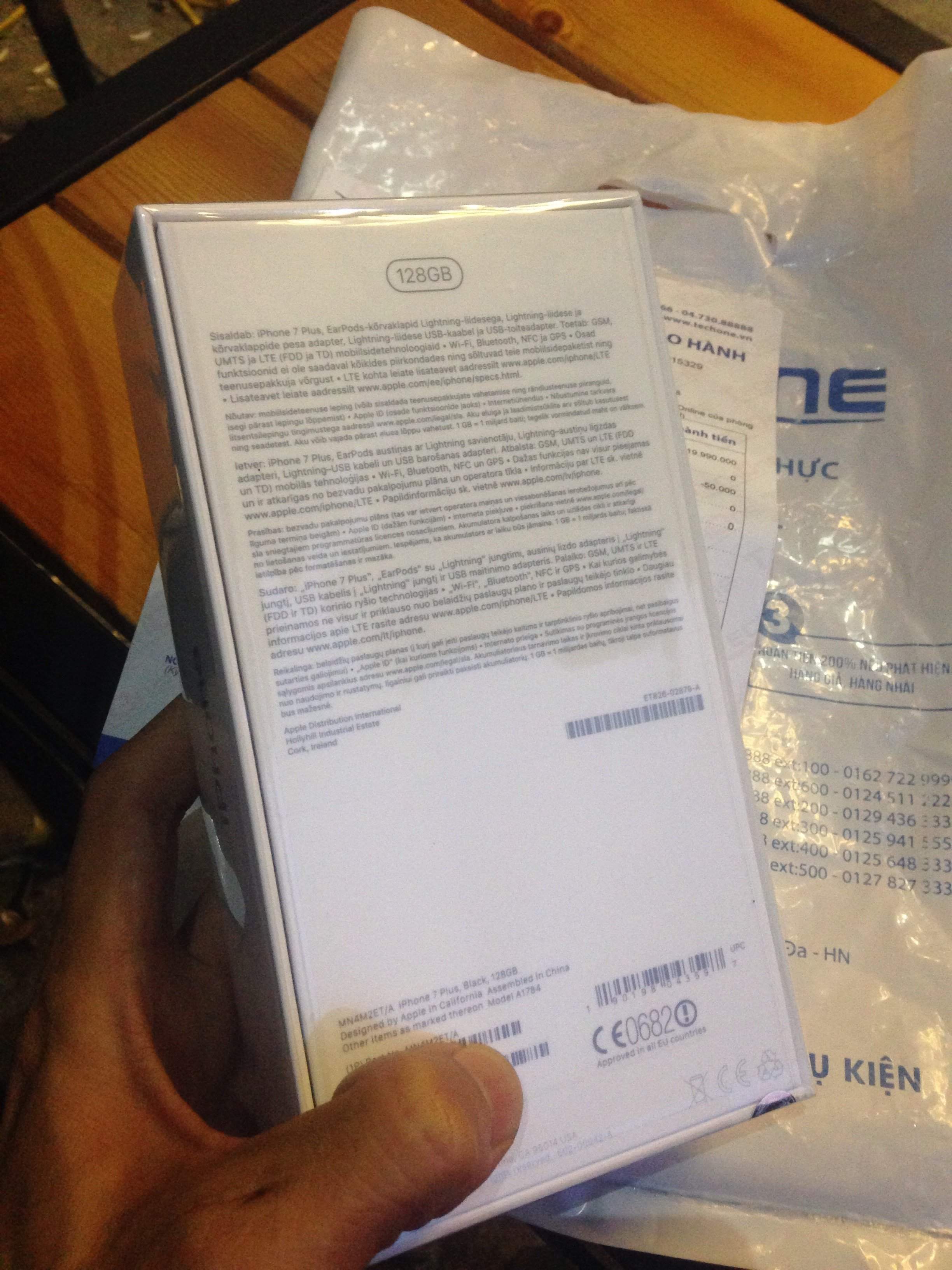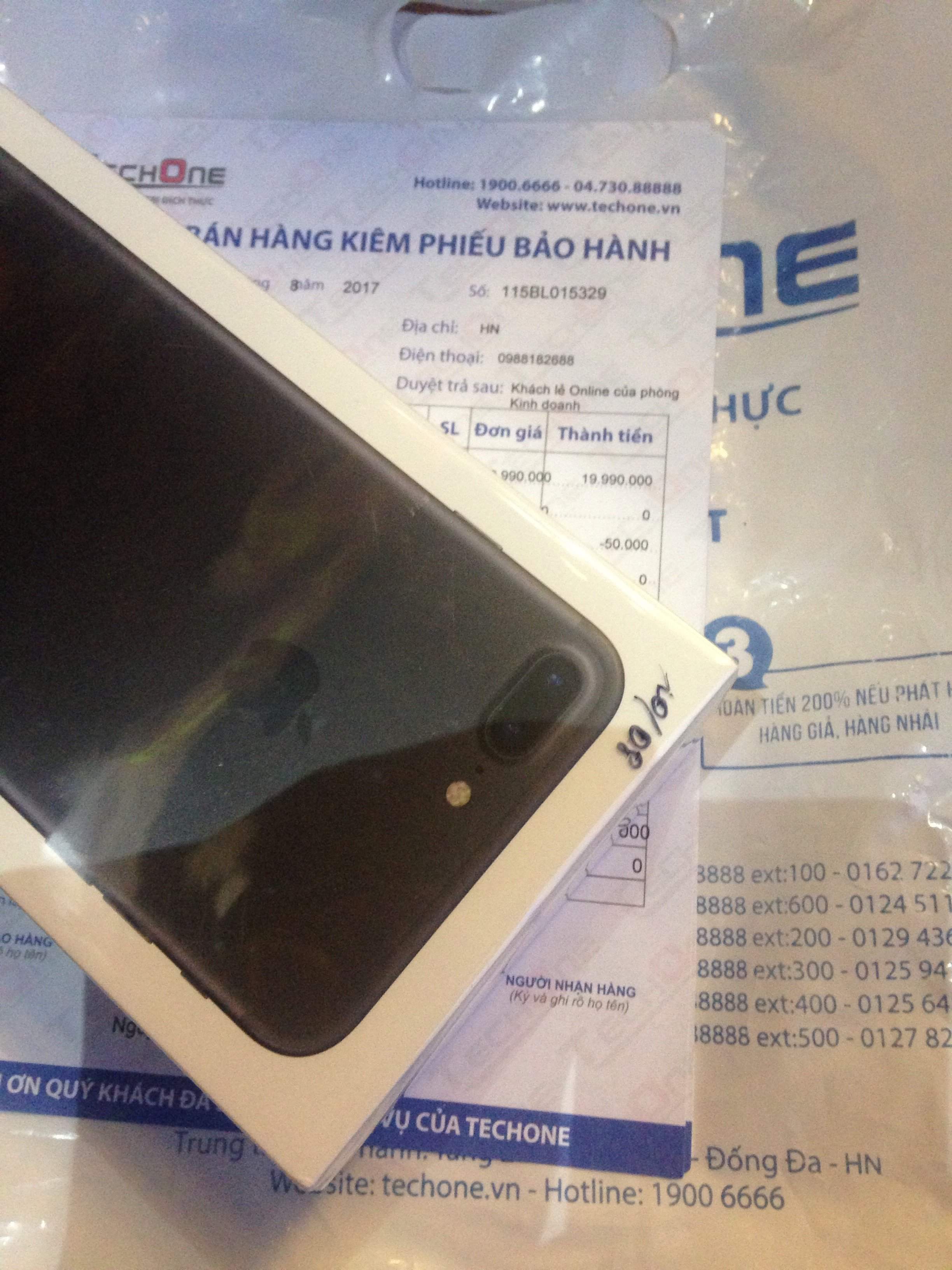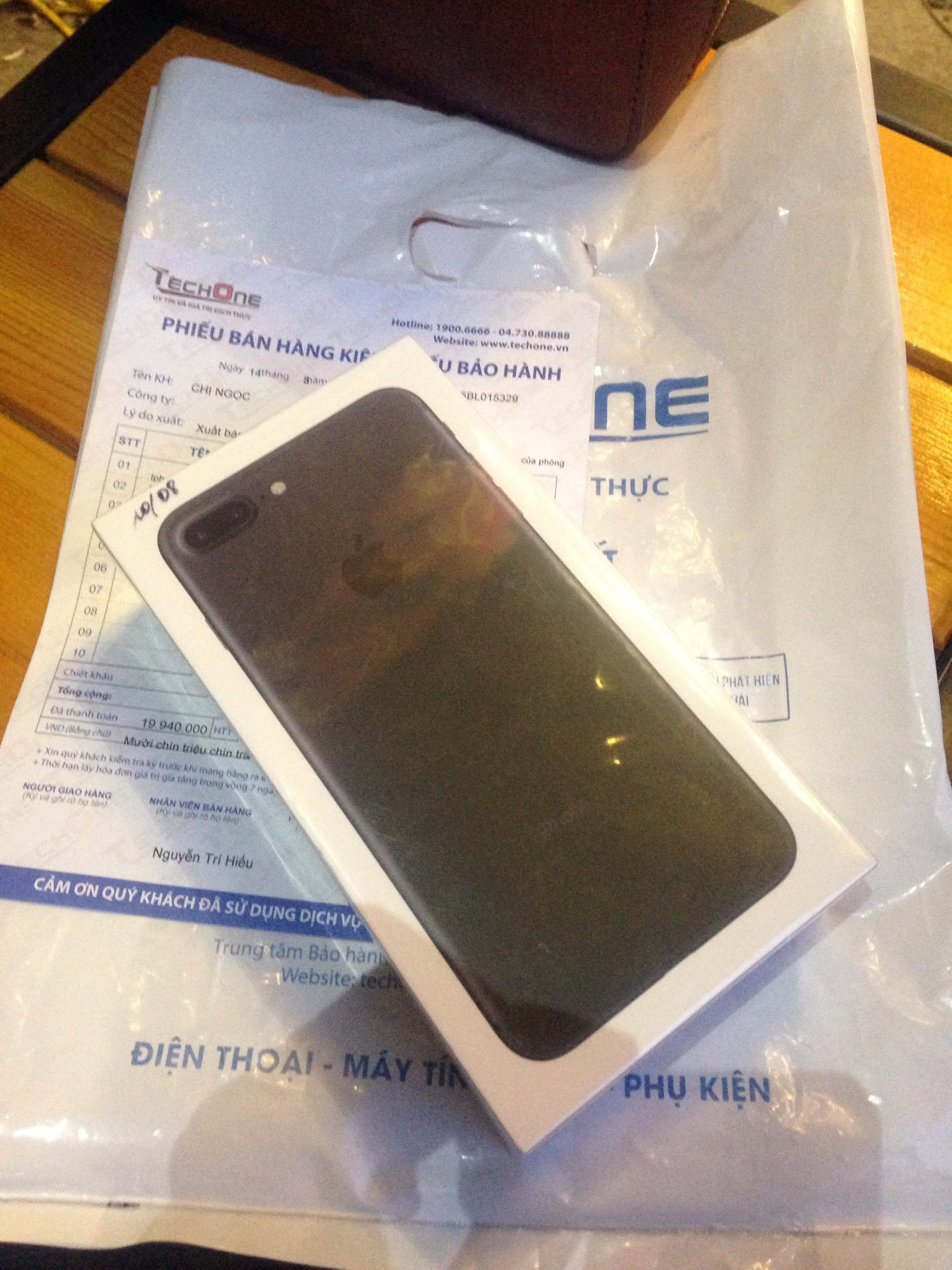 IPhone 7 Plus 128gb Matte Black new seal 100% chưa active máy chuẩn EU mua tại Tech One nguyên hoá đơn mua hàng 19tr990k mua kèm thêm gói Bảo hành siêu tốc của Tech One 1tr499k phát sinh bất cứ lỗi gì đều được đổi mới quá yên tâm sử dụng