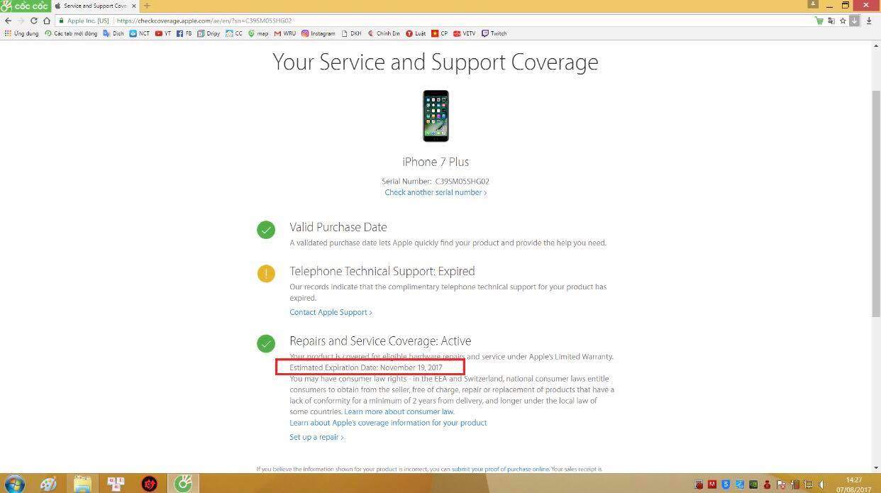 IPHONE 7 PLUS 32G CELLPHONE BH 12/2017