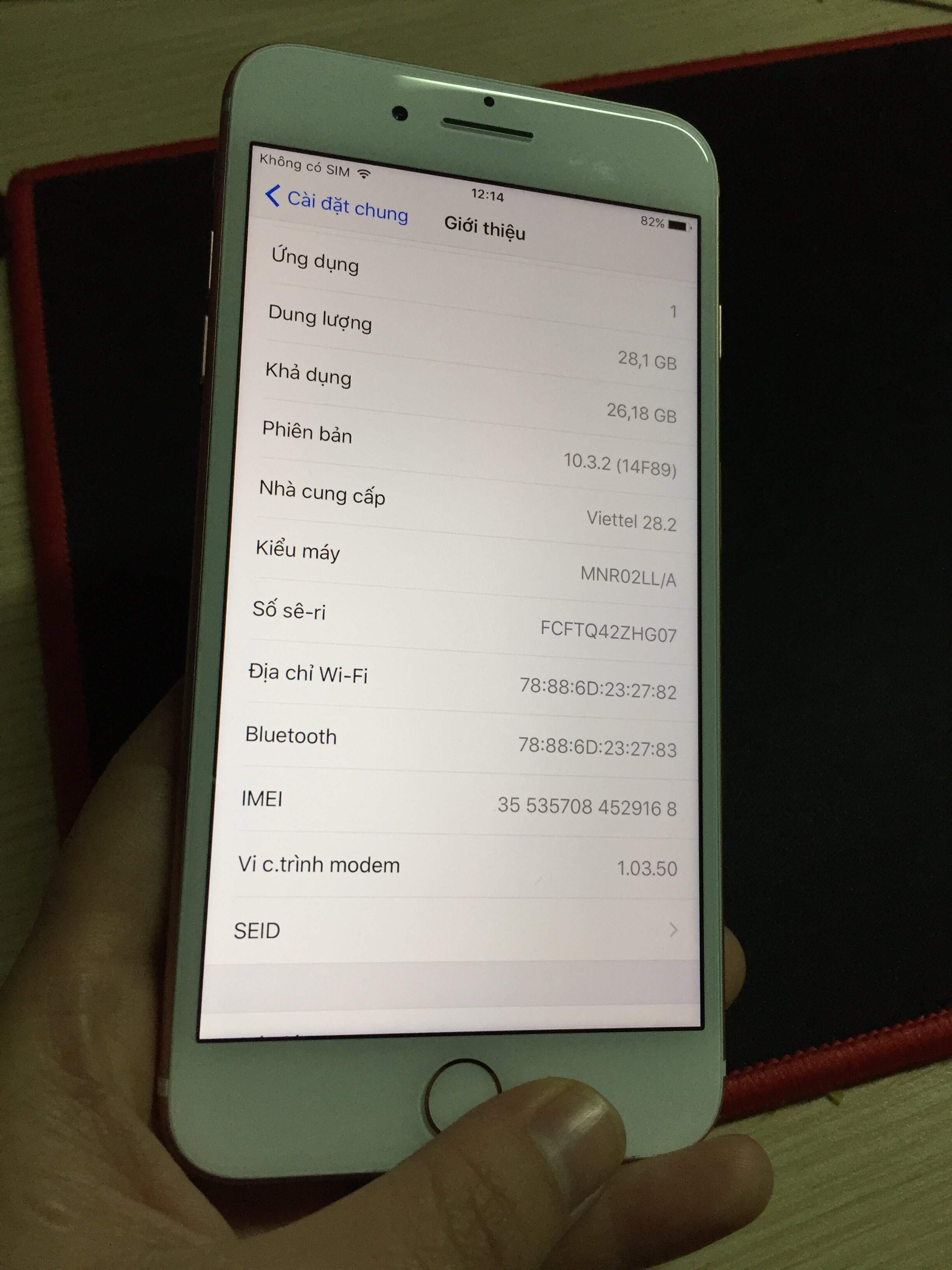 máy của tớ là 7 plus dung lượng máy 32g nhé, máy vẫn còn bảo hành của apple tới tận t6/2018 nhé nên dùng máy rất yên tâm ạ