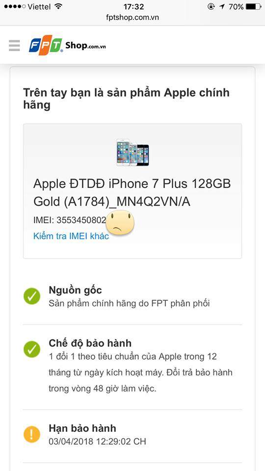 - iPhone 7 Plus Gold 128GB máy chính hãng FPT mã VN/A mới 100% nguyên seal chưa active, vừa đc đổi bảo hành về. Máy full box đầy đủ pk zin theo máy chưa bóc ra sử dụng, nguyên hoá đơn bh điện tử check trực tiếp tại trang chủ của FPT