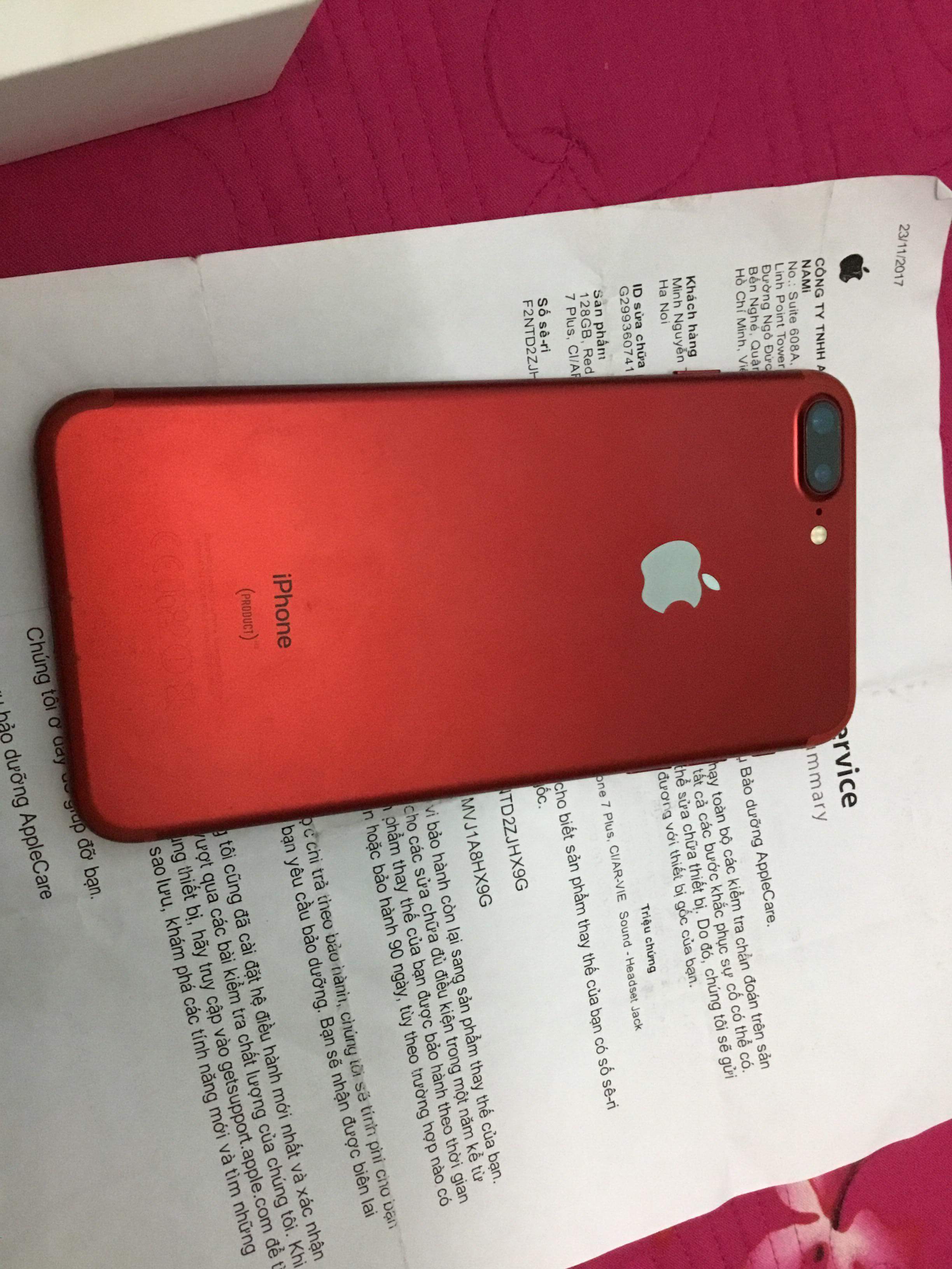Như tiêu đề cần bán 1 em 7plus 128, máy vợ mình dùng còn nguyên hoá đơn mua hàng tại nhật cường, và hoá đơn đổi trả bảo hành, máy cực chất và ko có một vết xước, máy mới active hôm 23/11, và còn bảo hành đến 05/06/2018, máy full box đầy đủ phụ kiện, mua bán tại nhà bao test thoải mái, mọi thông tin về máy có trên ảnh , giá quá đẹp cho em máy cực chất mà vẫn còn fix nhé
