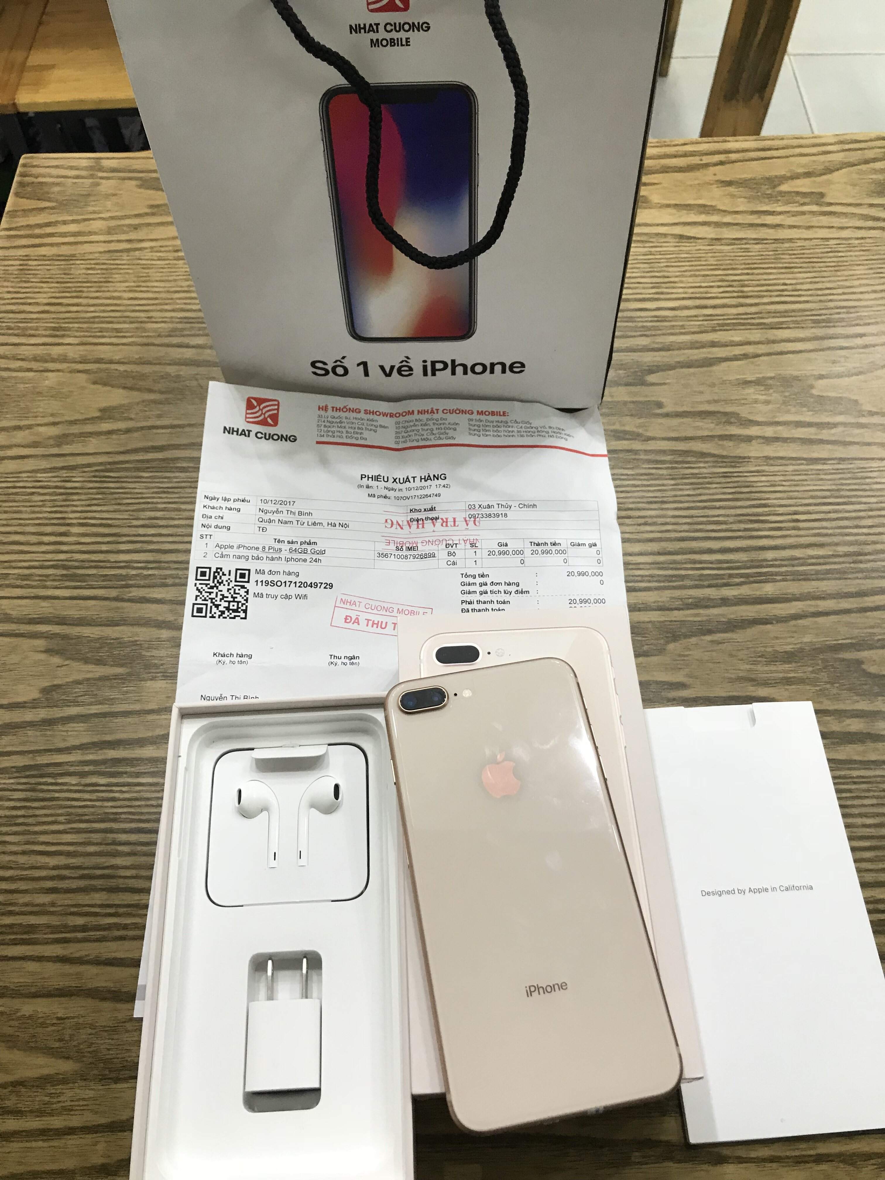 IPhone 8 Plus 64gb gold Full Box Nhật Cường Mobile