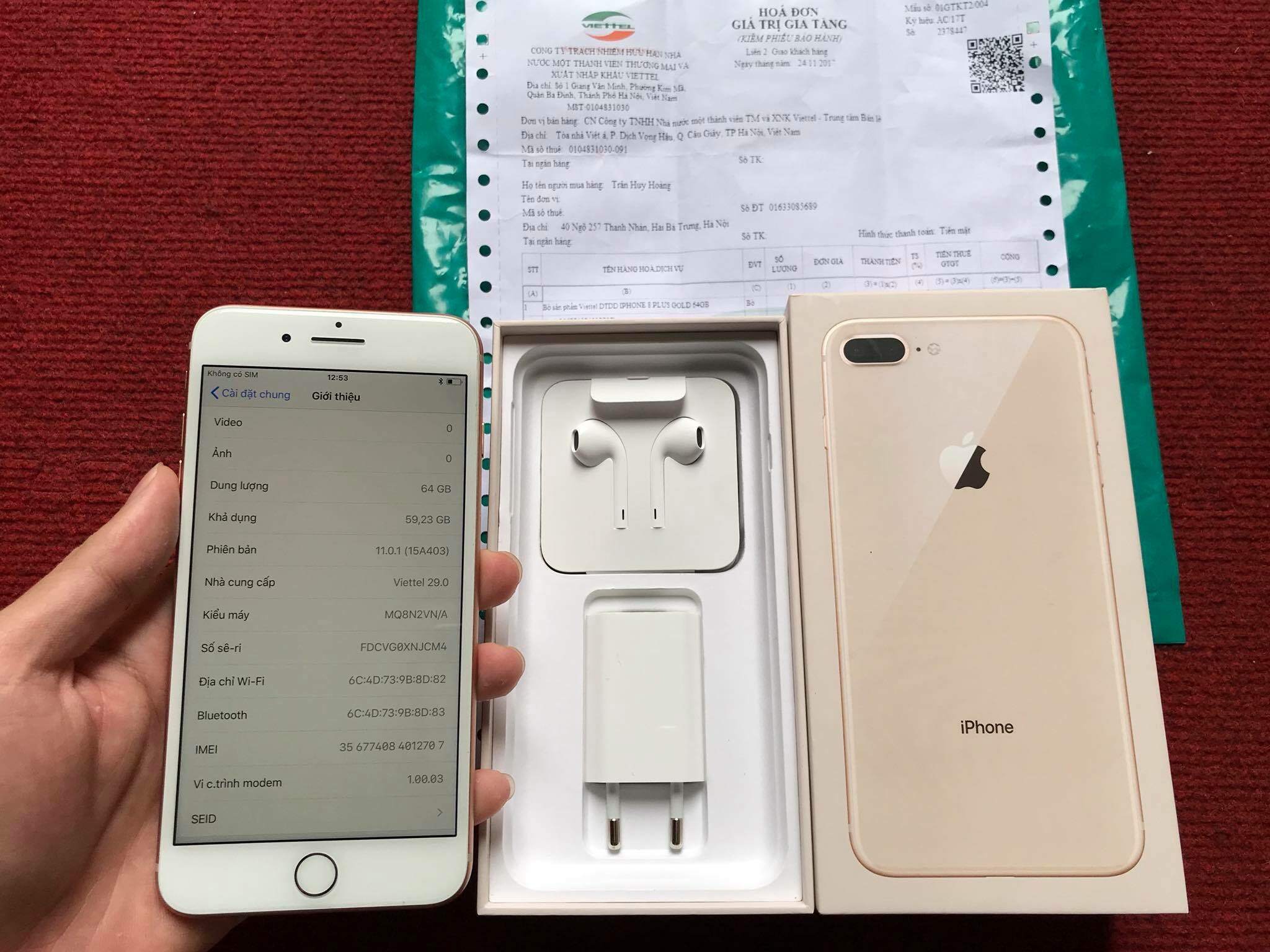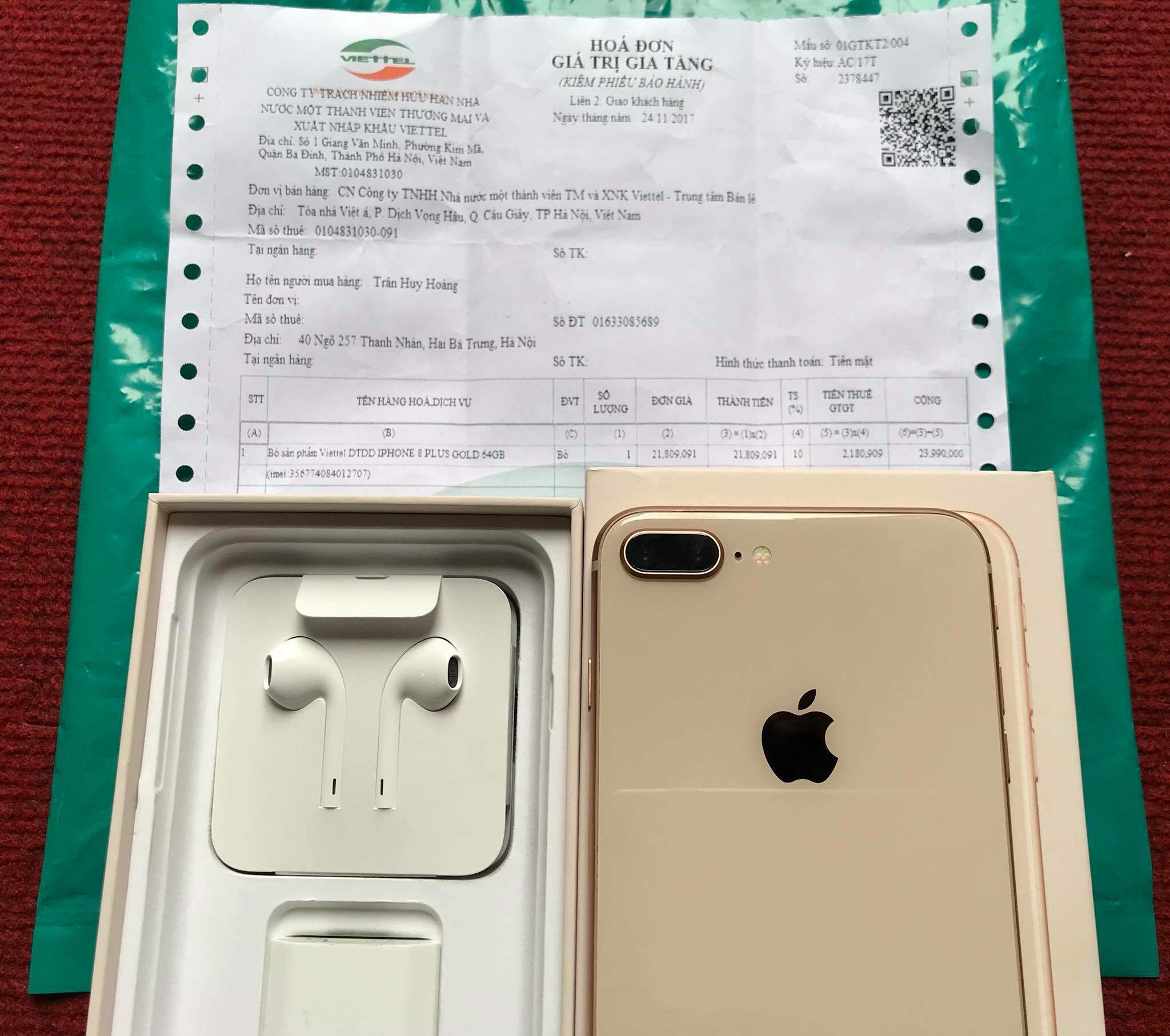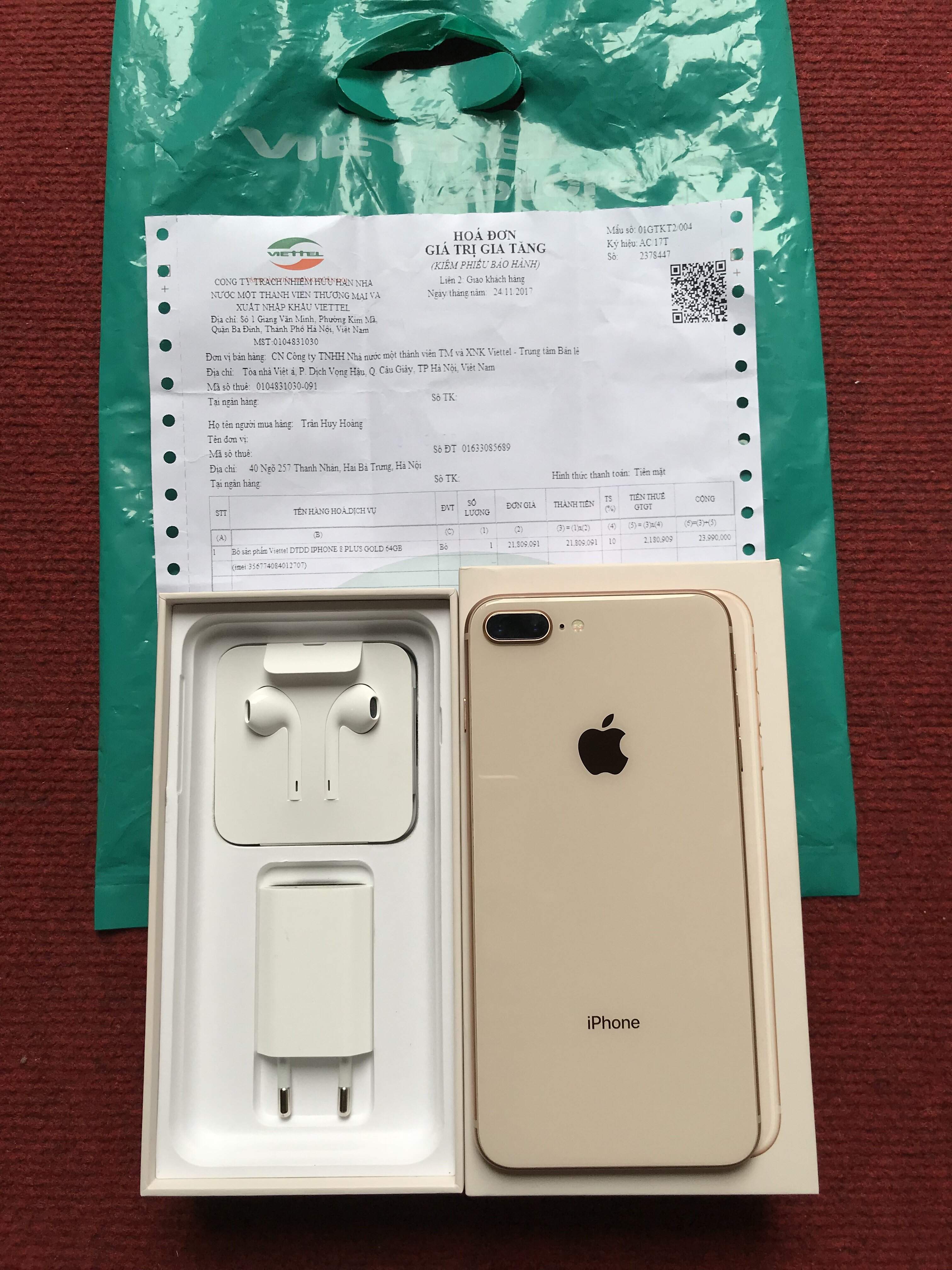 Như tiêu đề mình cần bán chiếc IPhone 8 plus 64gb Gold máy mua tại Viettel Store mới đc 45 ngày, còn bảo hành tới 24/11/2018. Máy còn nguyên hộp, hoá đơn mua hàng, túi mua hàng...ko thiếu thứ gì. Hình thức máy đẹp như mới ko xước tí nào.