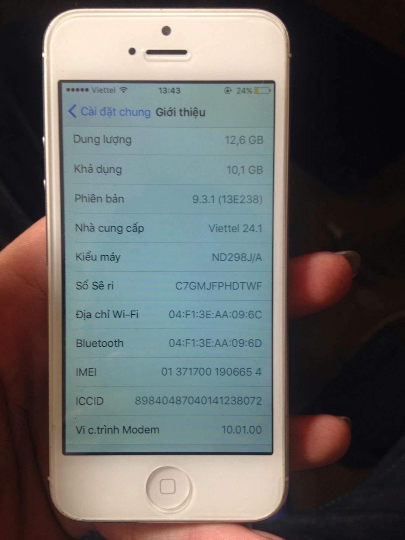 Bán iphone 5 trắng 16G quốc tế zin , k lỗi lầm . Máy đẹp mượt mà , long lanh. Ngoại trừ duy nhất có 1 vết xước như ảnh. Pin trâu bò ( dung lương chuẩn còn 97-98%) , 3G wifi căng đét . Phụ kiện cáp sạc . Bán nhanh 2tr650k . Fix chút xăng xe. E bên Ngã tư sở-Hà Nội