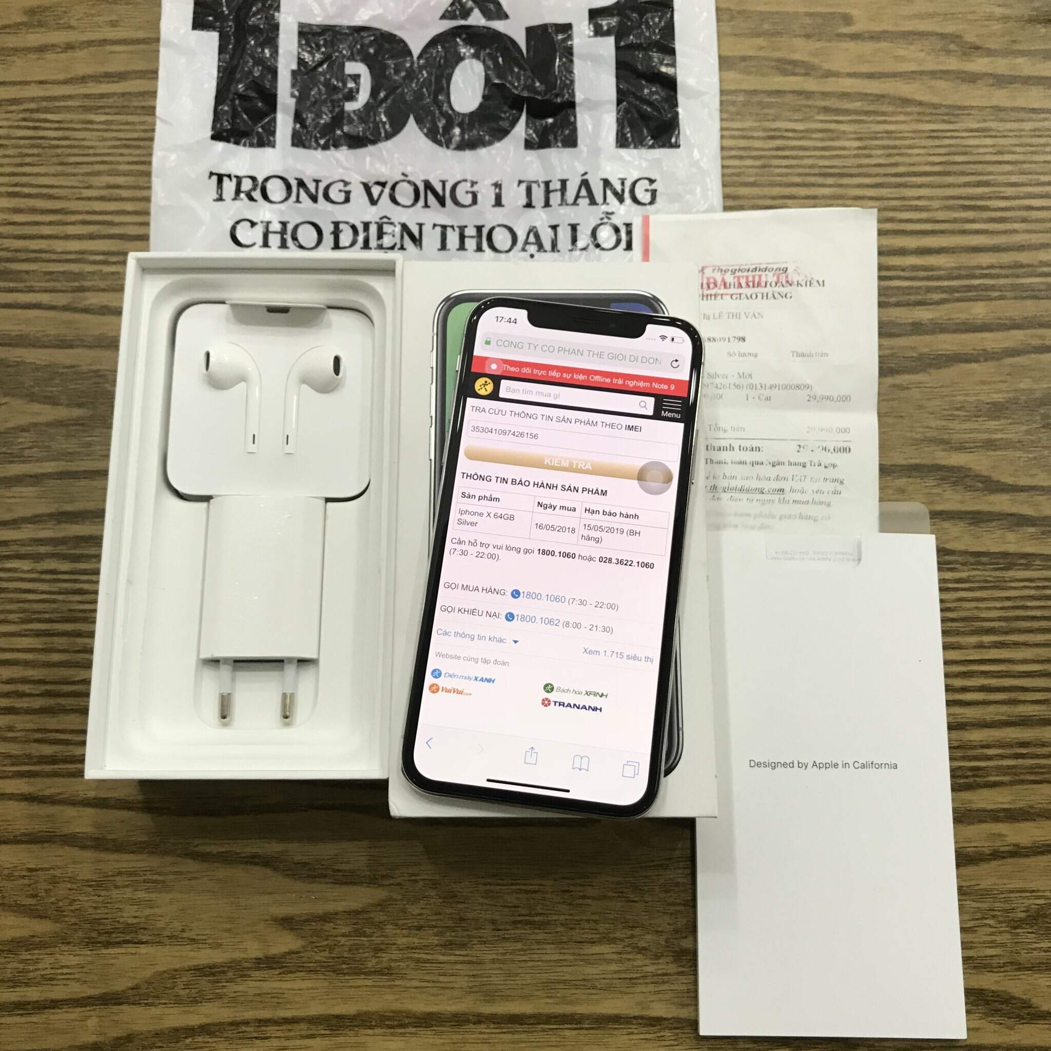 IPhone X 64gb Silver Chính hãng TGDD Like new 99,99% còn bảo hành dài 1 đổi 1 đến 16/5/2019 tại TGDD Toàn Quốc !