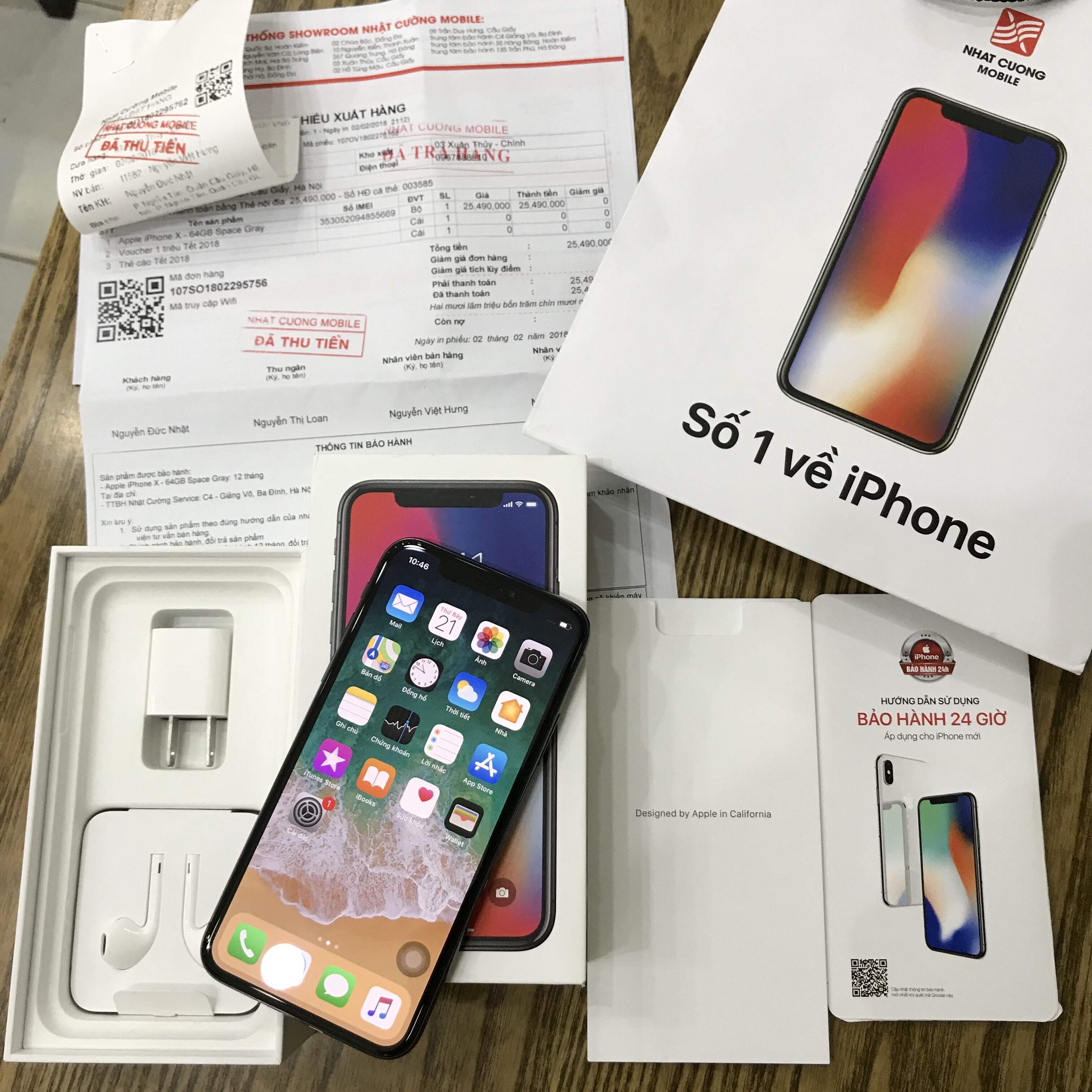 IPhone X 64gb Space Gray like new 99,99% máy mua tại Nhật Cường Mobile còn bảo hành dài đến 2/2019 !