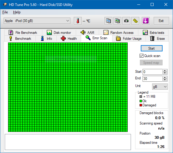 Mình có con iPod classic gen 5.5 không dùng nay đem bán. Ổ cứng ko bad, HD Tune check như hình đính kèm, ngoại hình khoảng 90% như hình, lưng xước dăm, pin được khoảng 1 tiếng. Lưu ý serial máy và serial trên vỏ không trùng nhau, cái này do lúc trước mình mua không để ý. Liên hệ 091 6644 226.