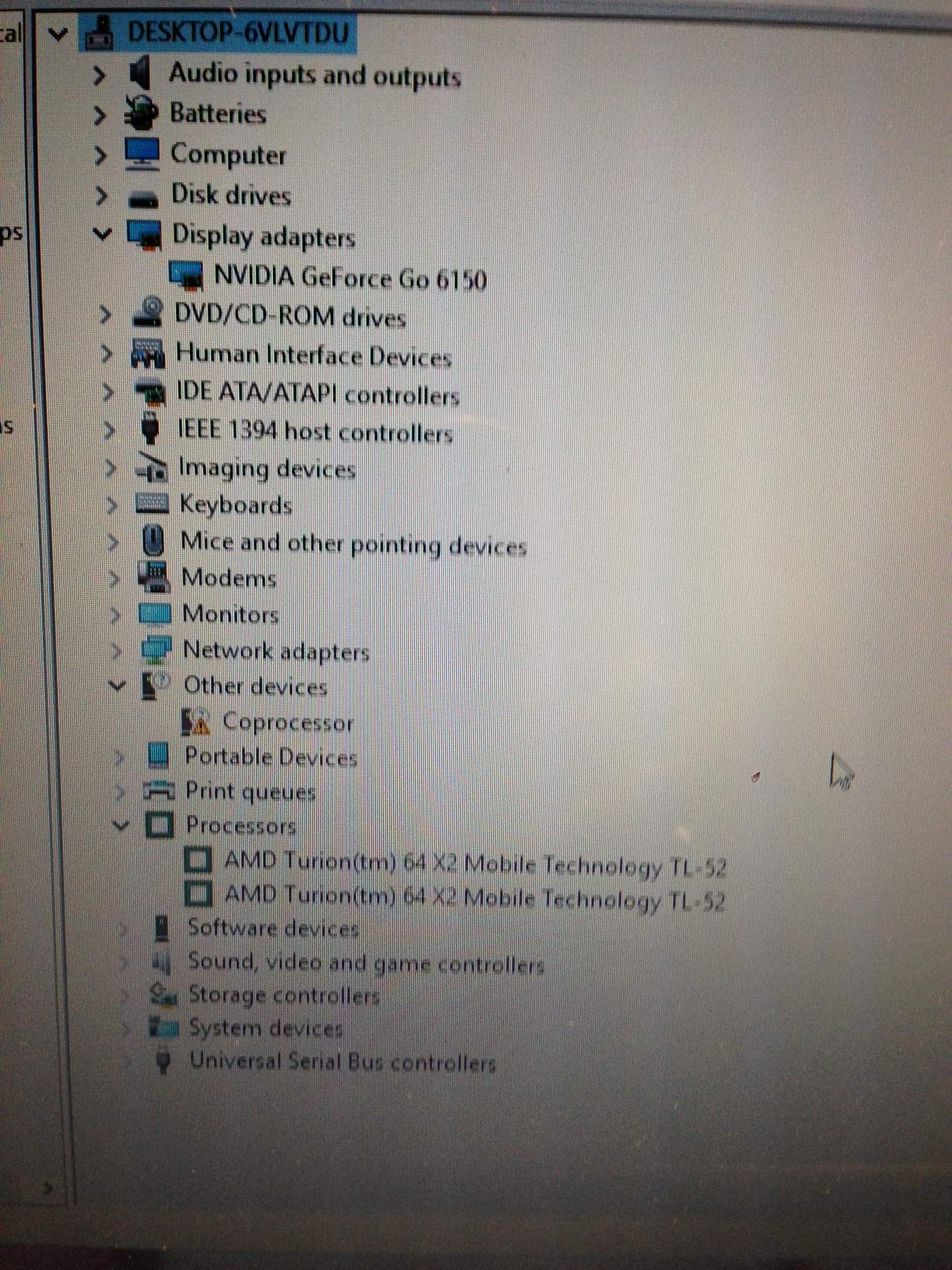 - CPU AMD Athlon 64 X2 TL-52 1.6Ghz.